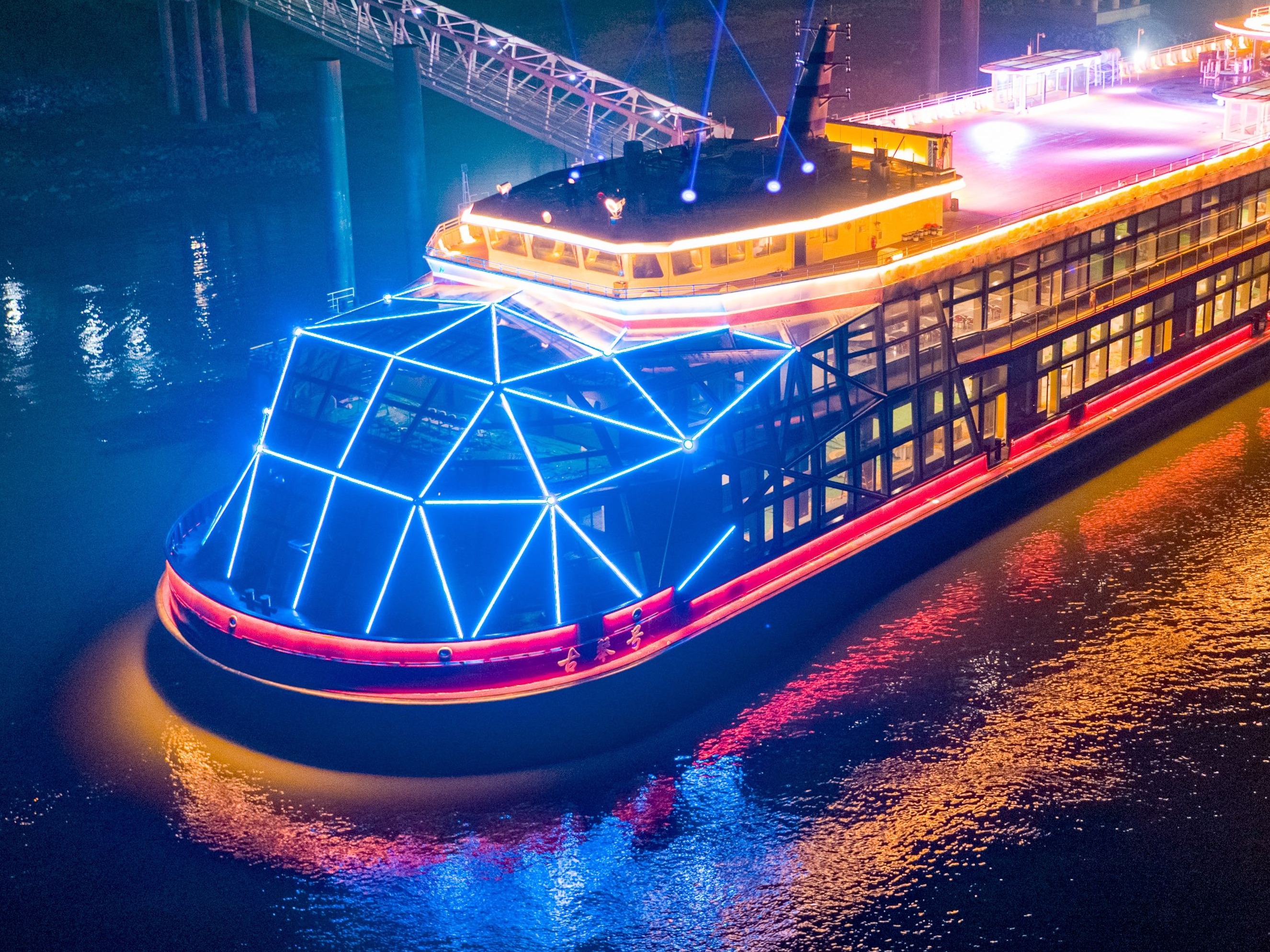 重新启航的古琴号,航程历时60—70分钟,游客可悠然地站在甲板上,任凭江风轻拂面颊,尽情观赏长江灯光秀的绚烂多姿,领略武汉夜景的迷人风采。