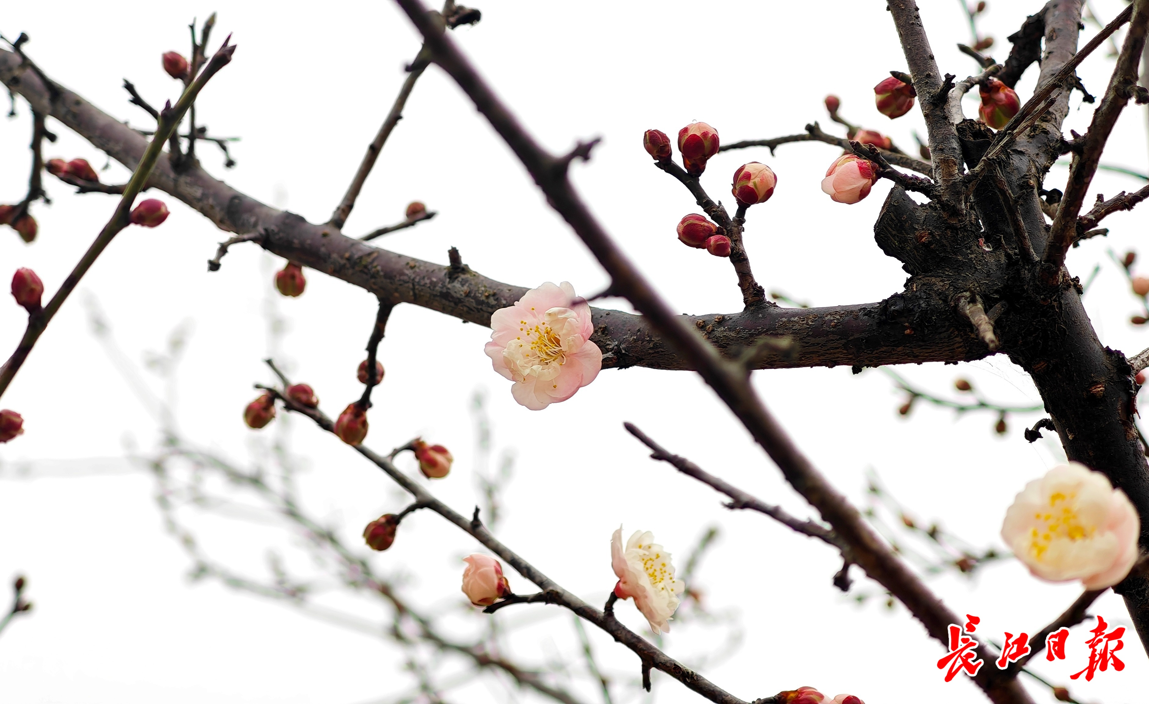 东湖梅园内的梅花陆续开放,春节期间花蕾同赏。长江日报记者 何晓刚 摄