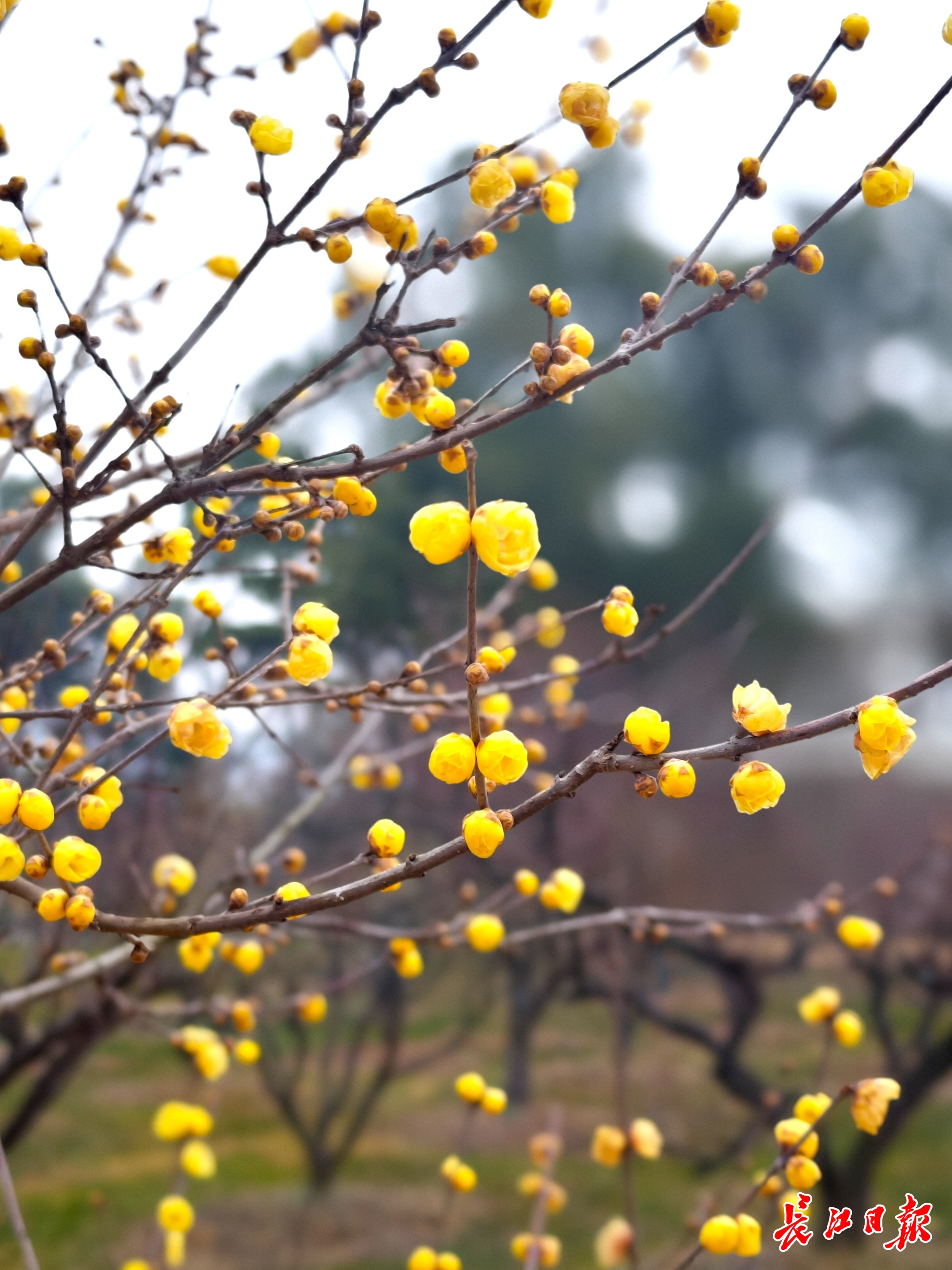东湖梅园蜡梅正值盛花期。长江日报记者 何晓刚 摄