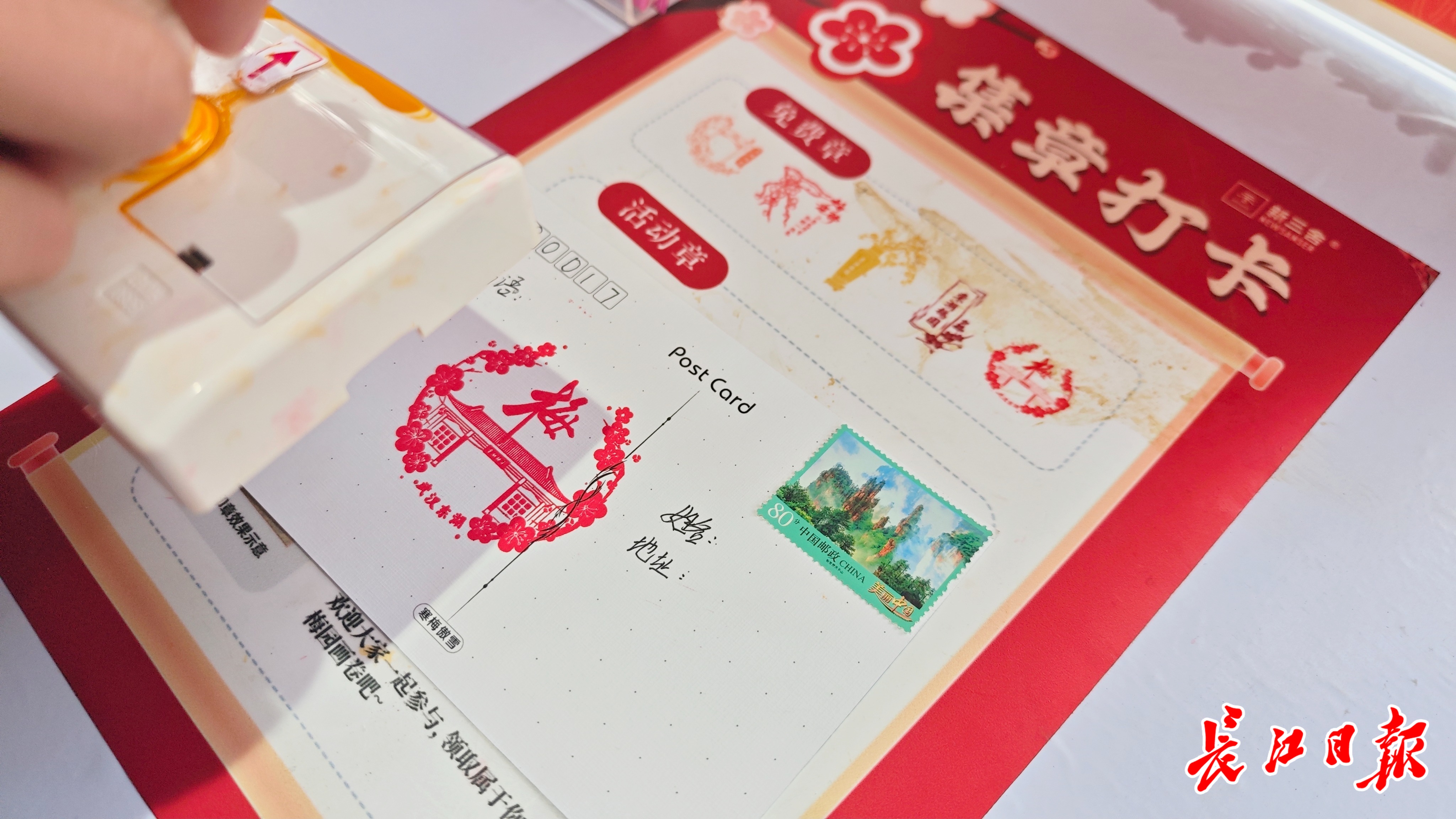 游客正在梅花驿站内盖梅花章。长江日报记者 何晓刚 摄