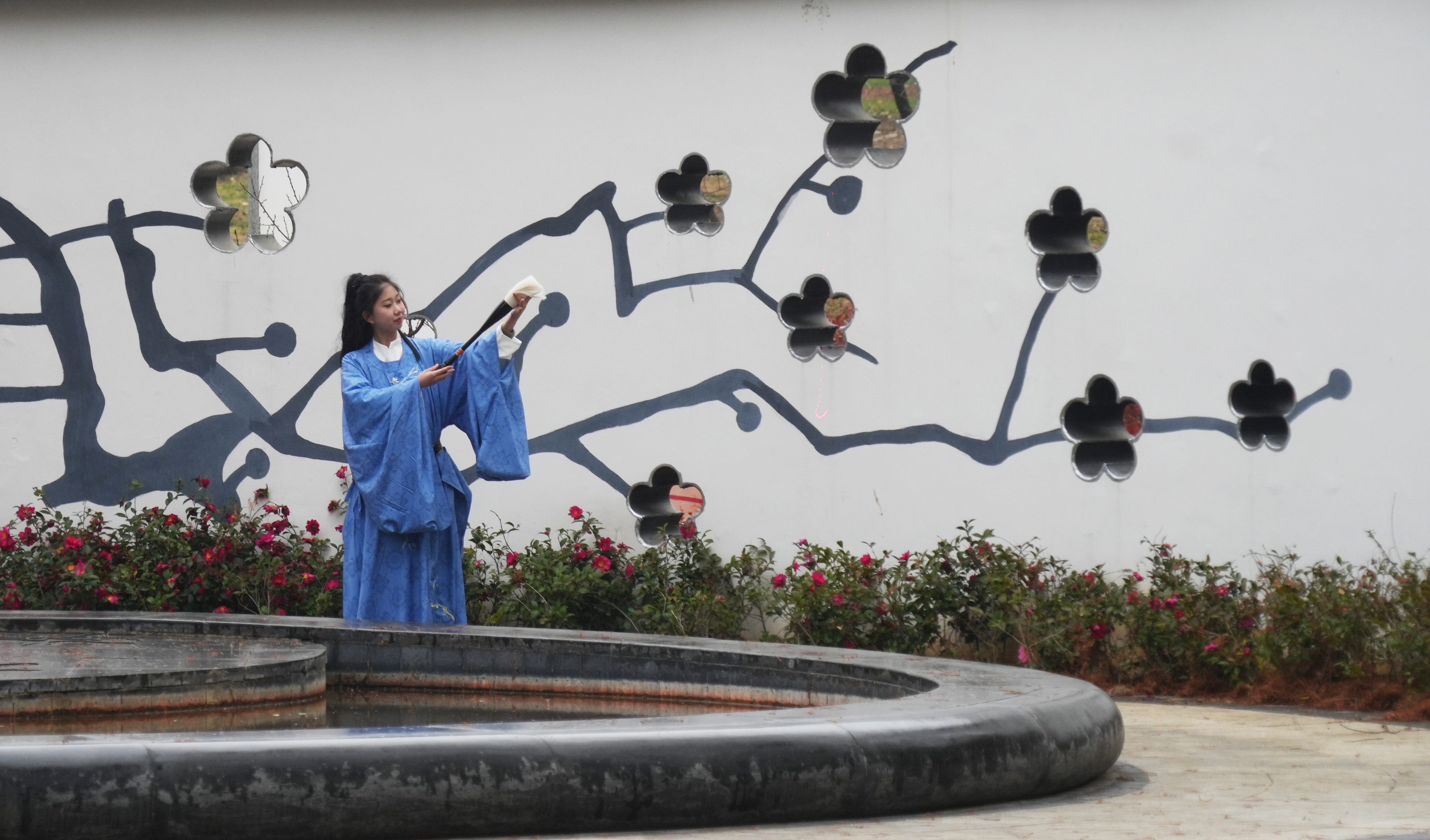 汉服演员正在墨池品梅经典处进行表演。长江日报记者 何晓刚 摄