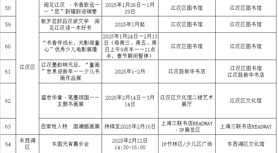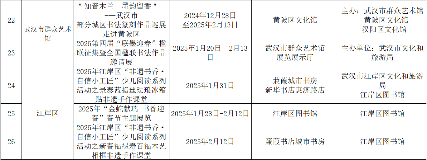 附:武汉市公共文化(图书馆、文化馆)2025年新春活动菜单