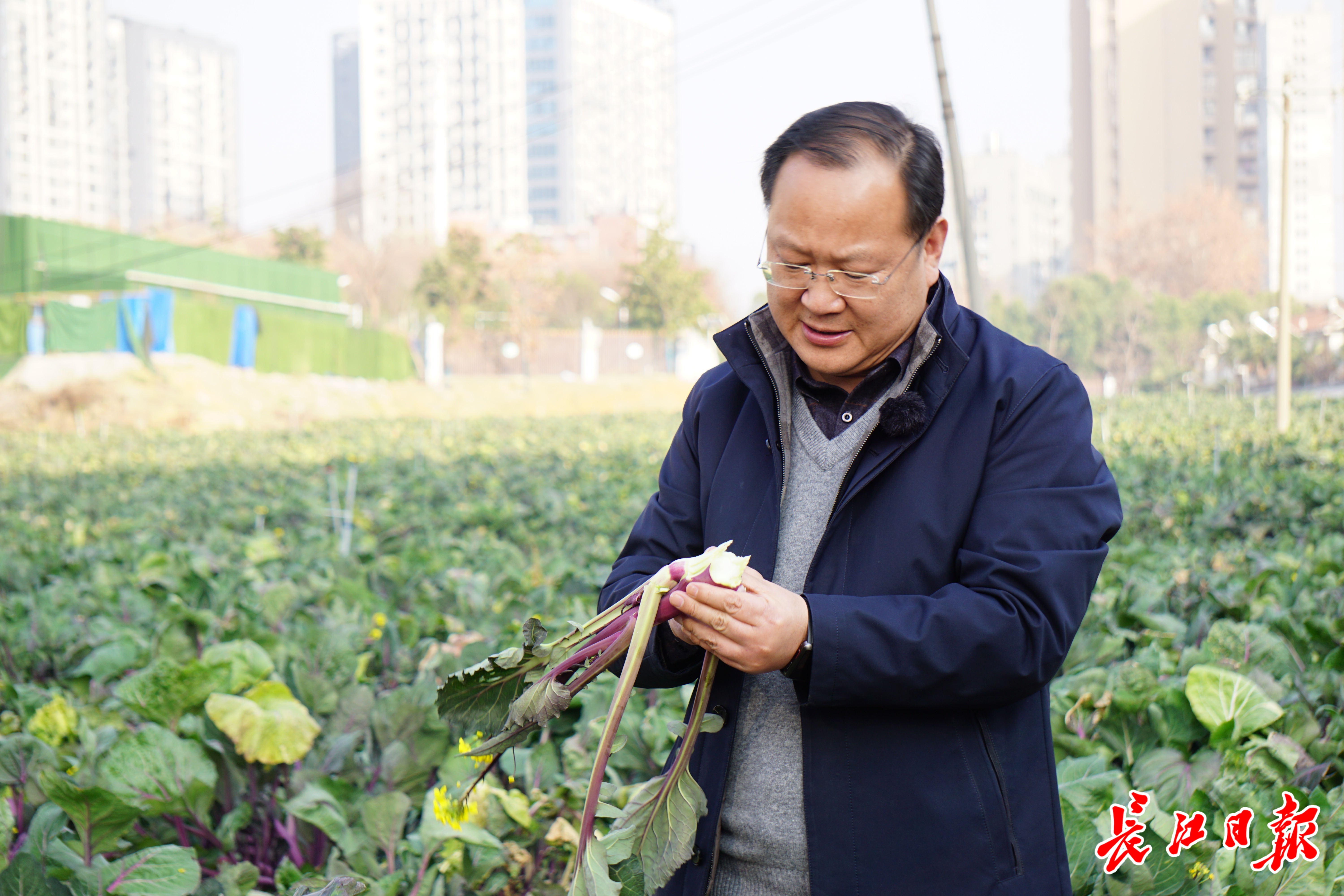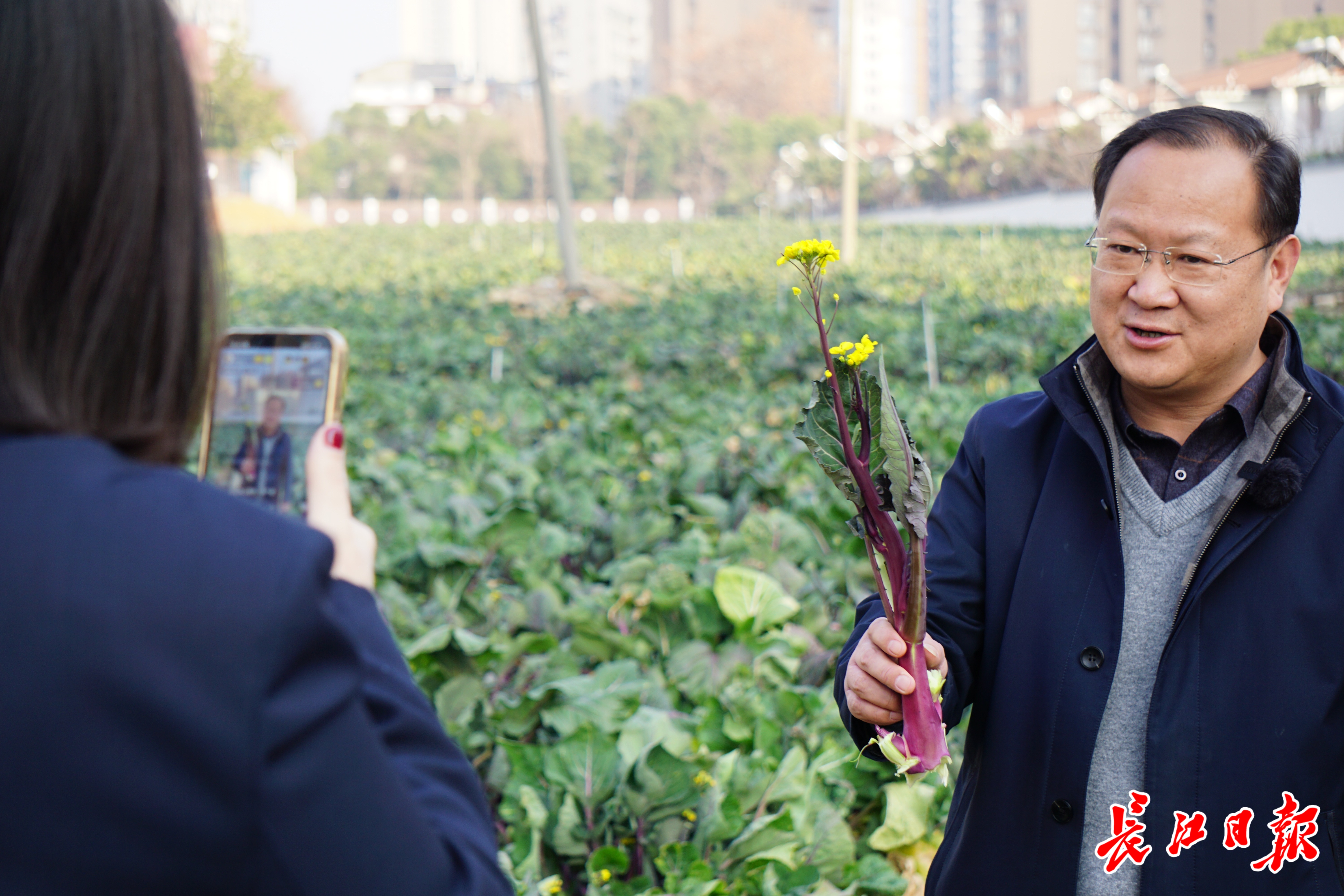 夏会勇介绍洪山菜薹。记者秦璟 摄
