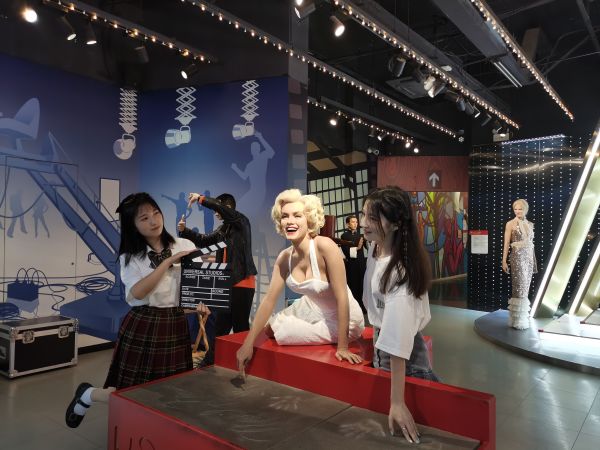 与“玛丽莲·梦露”合影。记者刘航 摄