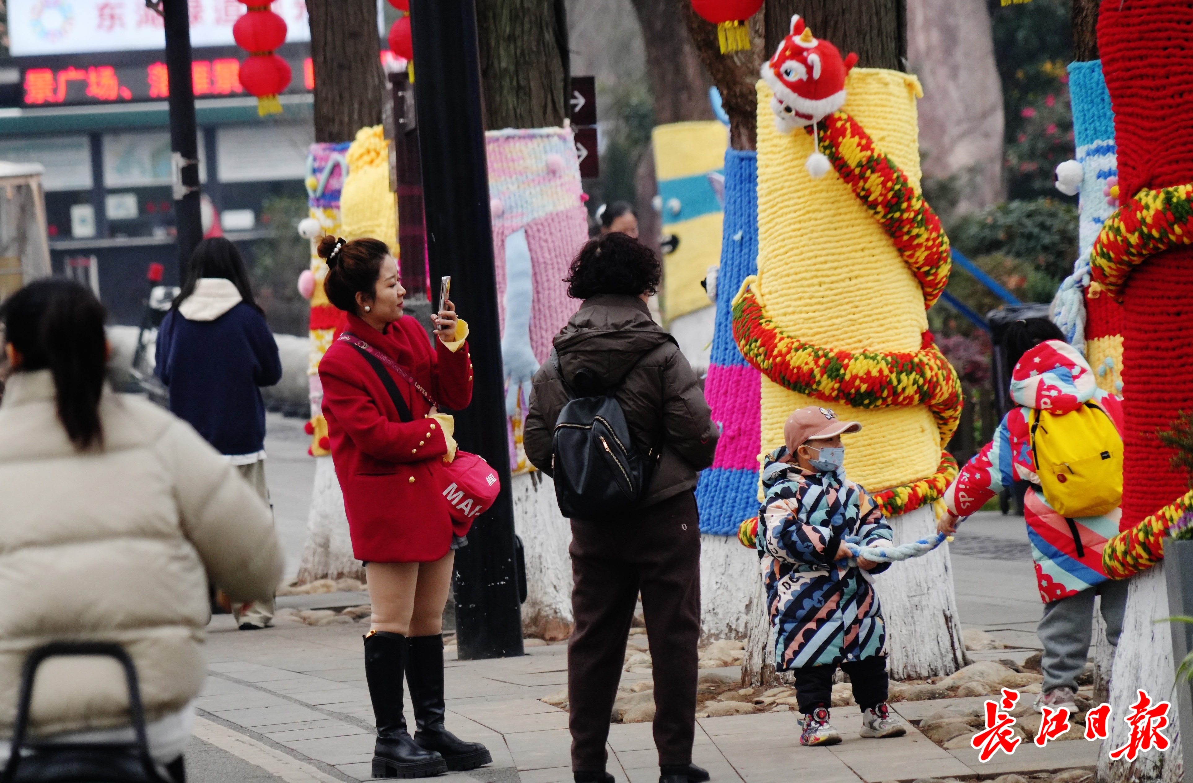 长江日报大武汉客户端1月26日讯(记者李文婕 通讯员何宇炀)春节临近,1月26日的东湖风景区,大红灯笼高高挂,中国结迎风飘扬,“灵蛇毛衣树”恭贺新禧,一抹抹鲜艳的中国红给景区营造出了安定祥和的喜庆氛围。
