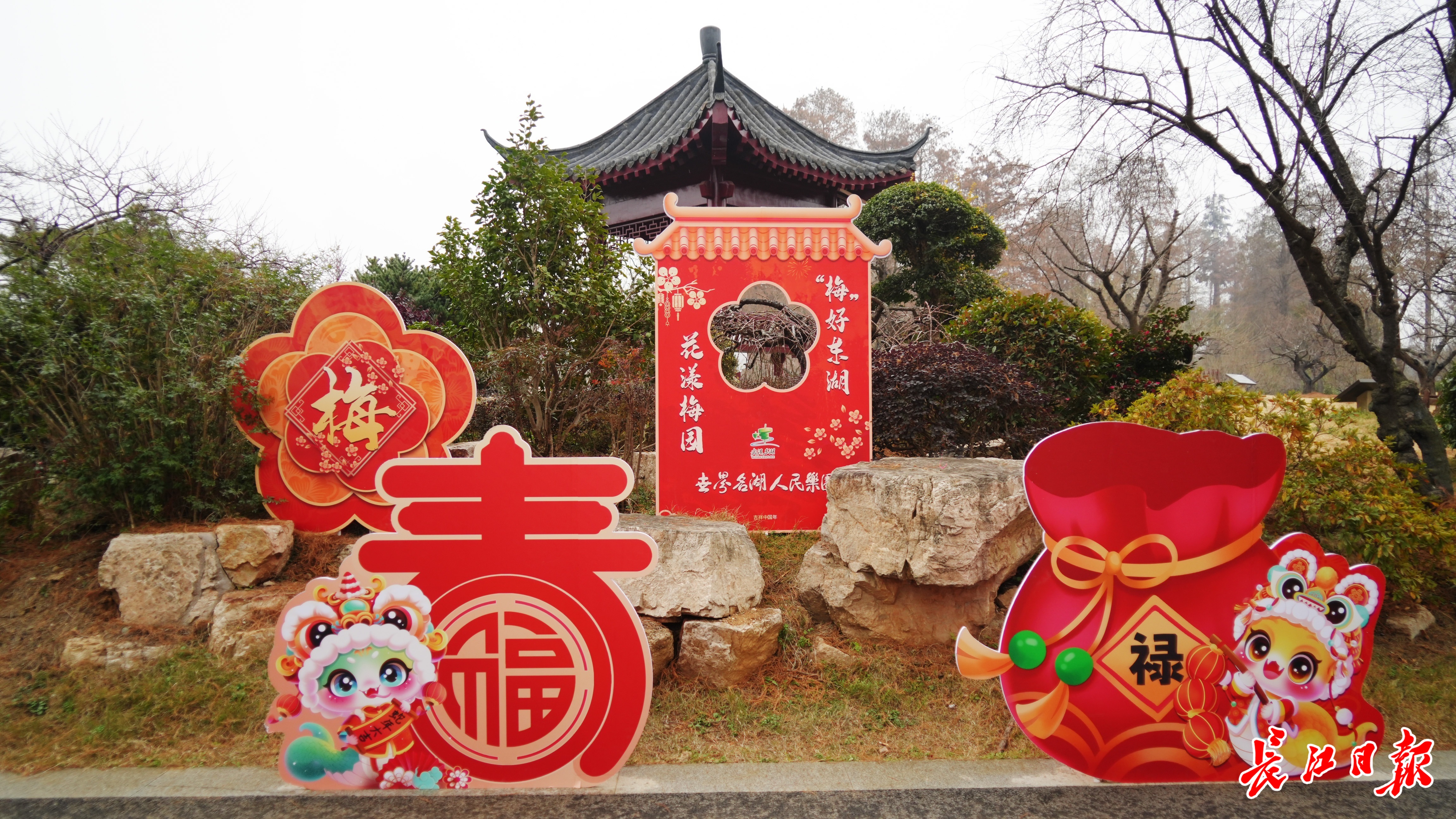 东湖梅园新春打卡板。长江日报记者 何晓刚 摄