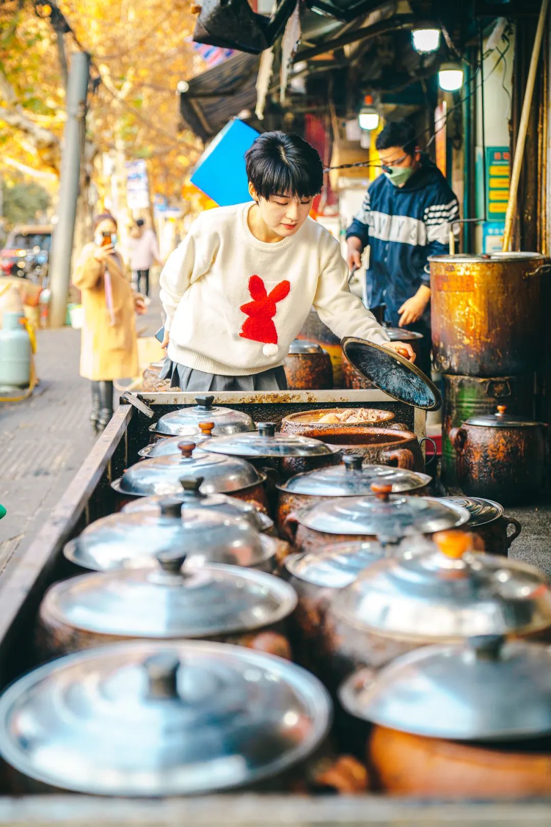 春节期间,街道两旁的店铺热闹非凡,各种美食香气四溢。桂花糊、拇指生煎包、梅花糕……一条长街上“美食打架”,花样繁多。走在粮道街,你可以边吃边逛,感受热气腾腾的市井烟火气。