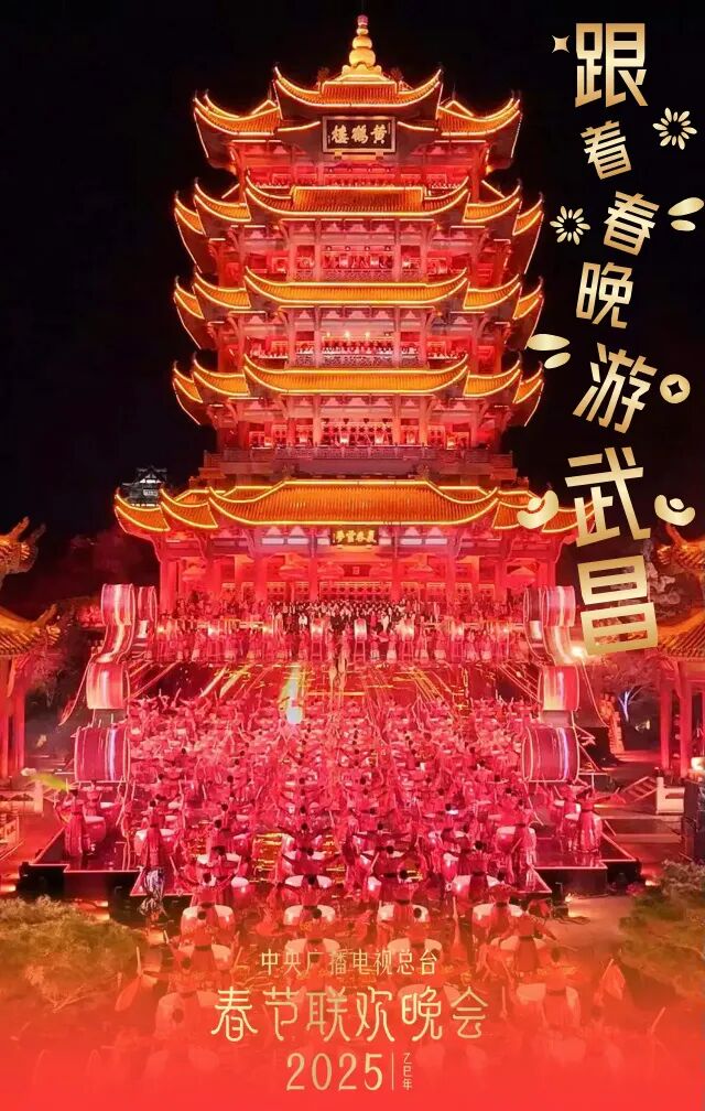 今年,武汉首次作为分会场登上“2025年央视春节联欢晚会”,城市地标黄鹤楼精彩亮相。春节期间,游客需线上预约黄鹤楼公园门票,从东门入园。