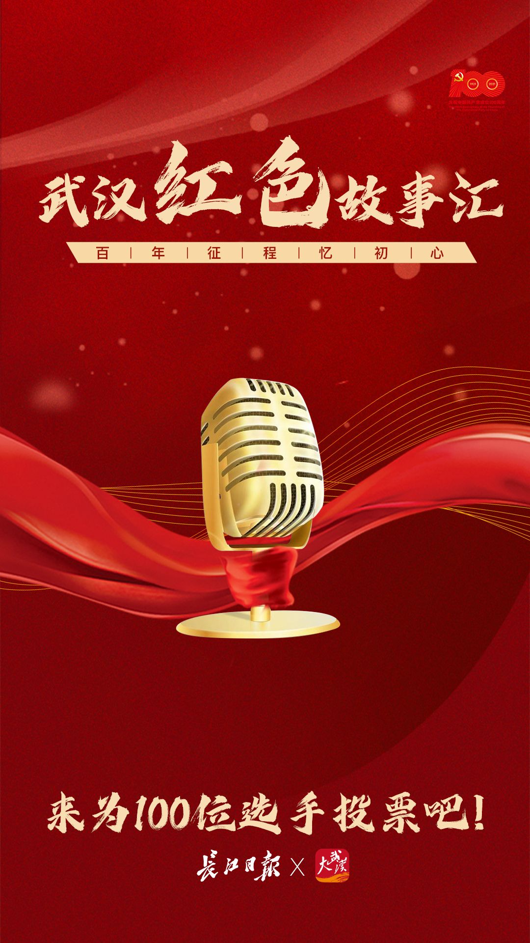 “百年征程忆初心——武汉红色故事汇”讲解大赛面向全社会开展,通过讲红色故事,以“小切口”展现“大主题”,折射中国共产党带领中国人民进行革命、建设和改革的光辉历程和丰功伟绩,引领人们从中汲取信仰力量、激荡前行动力。百位选手讲解视频在大武汉客户端上线并邀请市民投票,综合投票情况与复赛现场表现,将有20位选手进入决赛,并争夺“武汉红色故事汇讲解大赛金牌讲解员”桂冠。