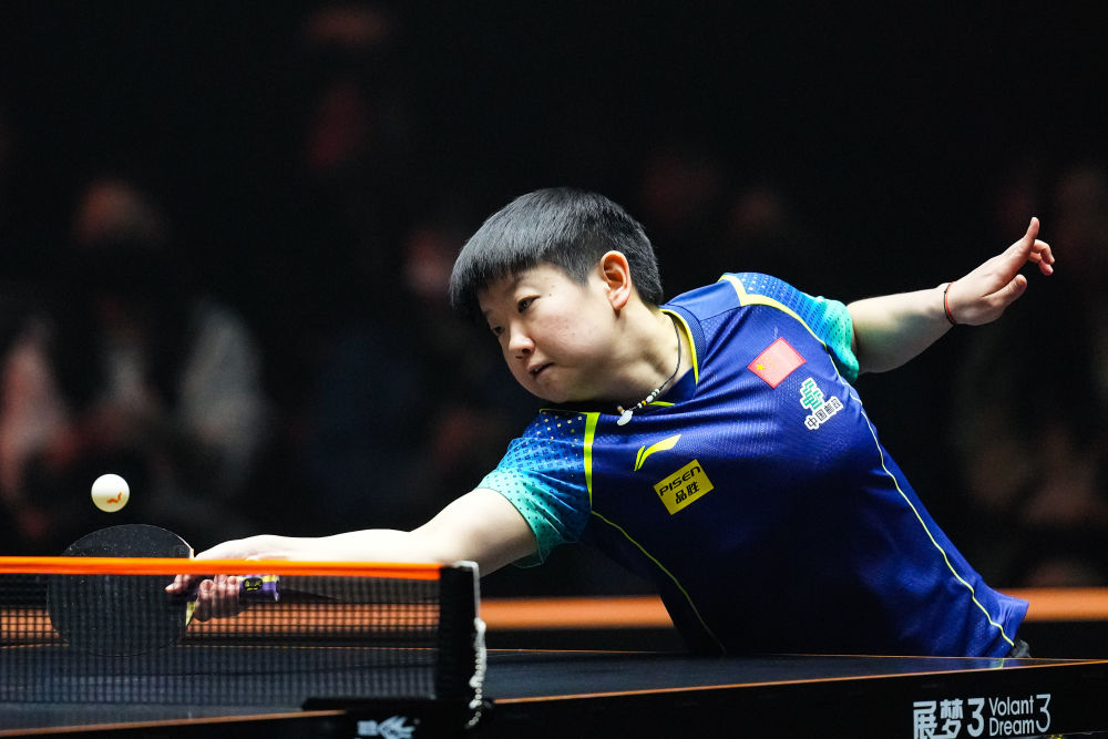 图为孙颖莎2024年11月21日在2024世界乒乓球职业大联盟(WTT)福冈总决赛的比赛中回球。新华社记者 张笑宇 摄