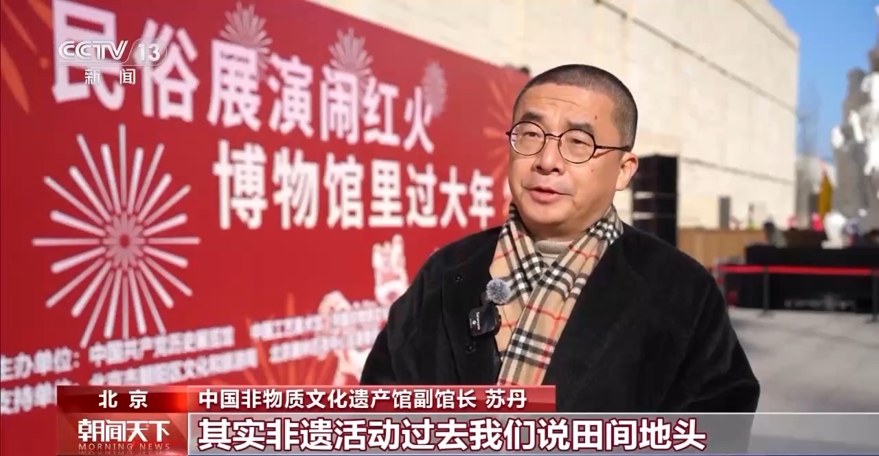 中国非物质文化遗产馆副馆长 苏丹:非遗活动过去我们说田间地头、在村舍、在集镇、在市场,所以我觉得从展厅走出来是一个非常好的选择。这次春节我们给大家准备了丰富多彩的各种各样的非遗展演节目,欢迎各位来非遗馆过年。