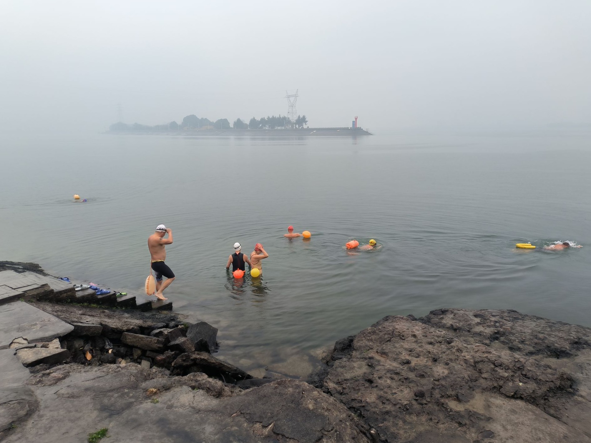 近日,在湖北宜昌夷陵冬泳基地,20多名冬泳爱好者陆续到来。尽管天降小雨,气温骤降,但“泳”者无畏,不惧寒冷,他们个个精神抖擞,争先恐后跃入江中,劈波斩浪。市民陈先生表示,只要有时间,他将风雨无阻坚持游泳锻炼,也希望新的一年工作生活顺心顺意,如鱼得水。