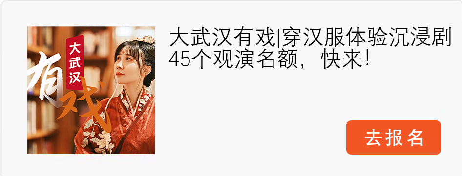 首场活动主题为“三联大武汉剑梦江湖”,由上海三联READWAY联合长江日报大武汉客户端共同举办,剧目为《我们的荆轲》。端午小长假连演三天,观演者与演员将处于同一空间,享受沉浸式演出,让你“一秒入剧”。活动现场可与演员互动,拍照上传大武汉客户端“拍一拍”还能获得更多惊喜。