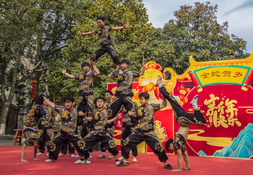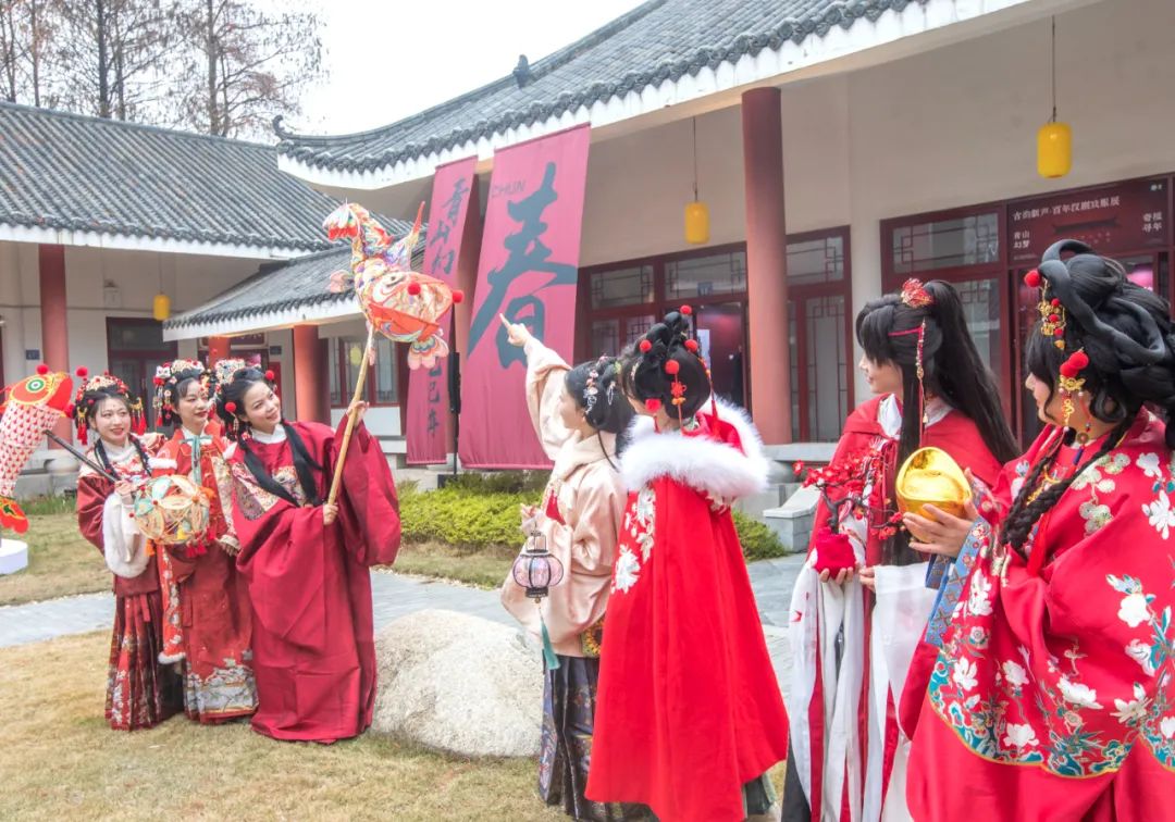 咚咚锵,咚咚锵……伴随着锣鼓喧天的新春乐曲,大余湾庙会上的迎春活动火热上演。