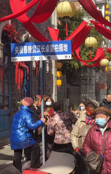 2月8日,武汉园博园汉口里热闹非凡,央视春晚长桌宴拍摄地更是人潮涌动。红绸漫卷,花灯高悬,40米的长桌两旁,市民游客争相合影。