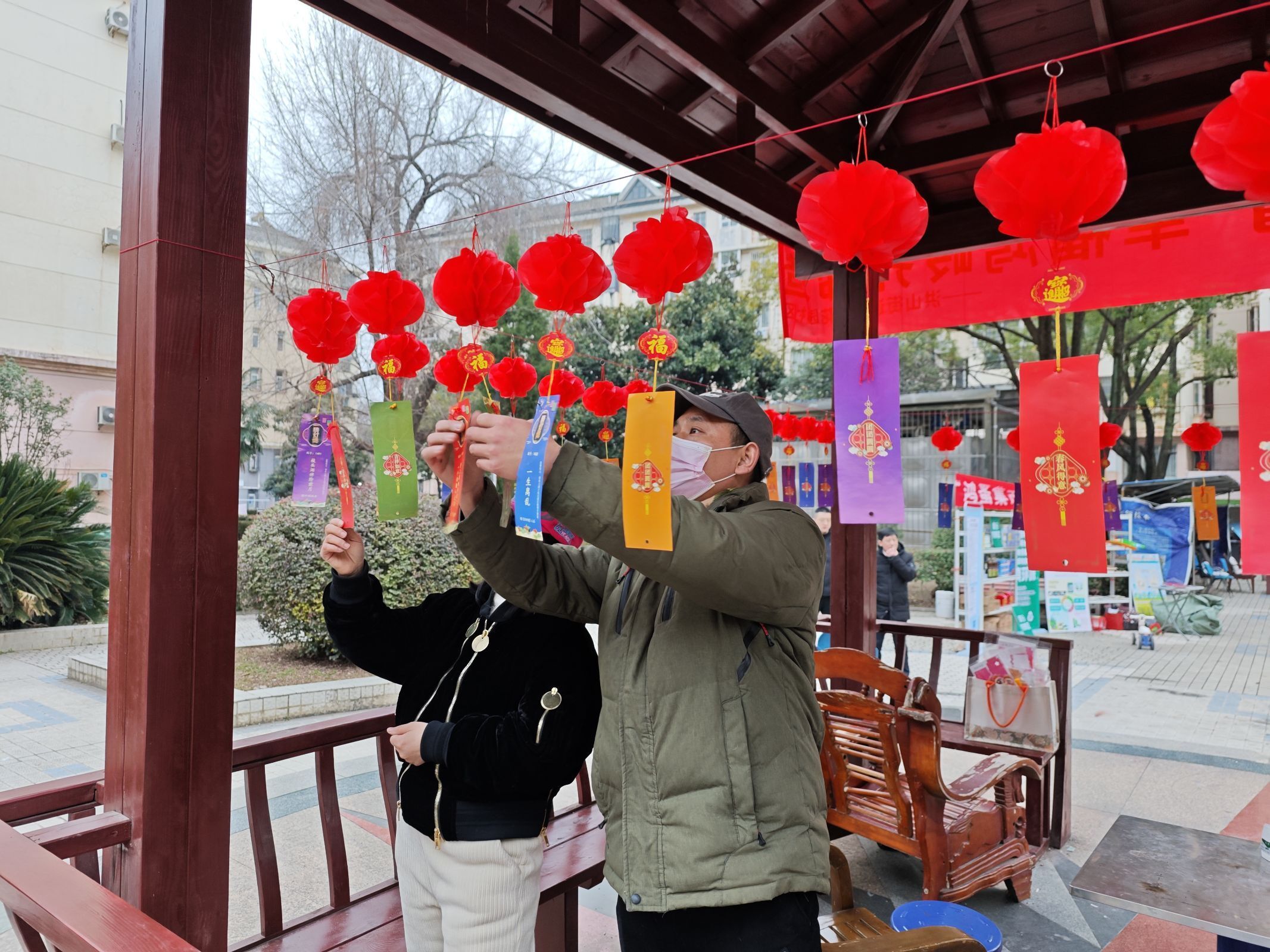 居民正在猜灯谜。