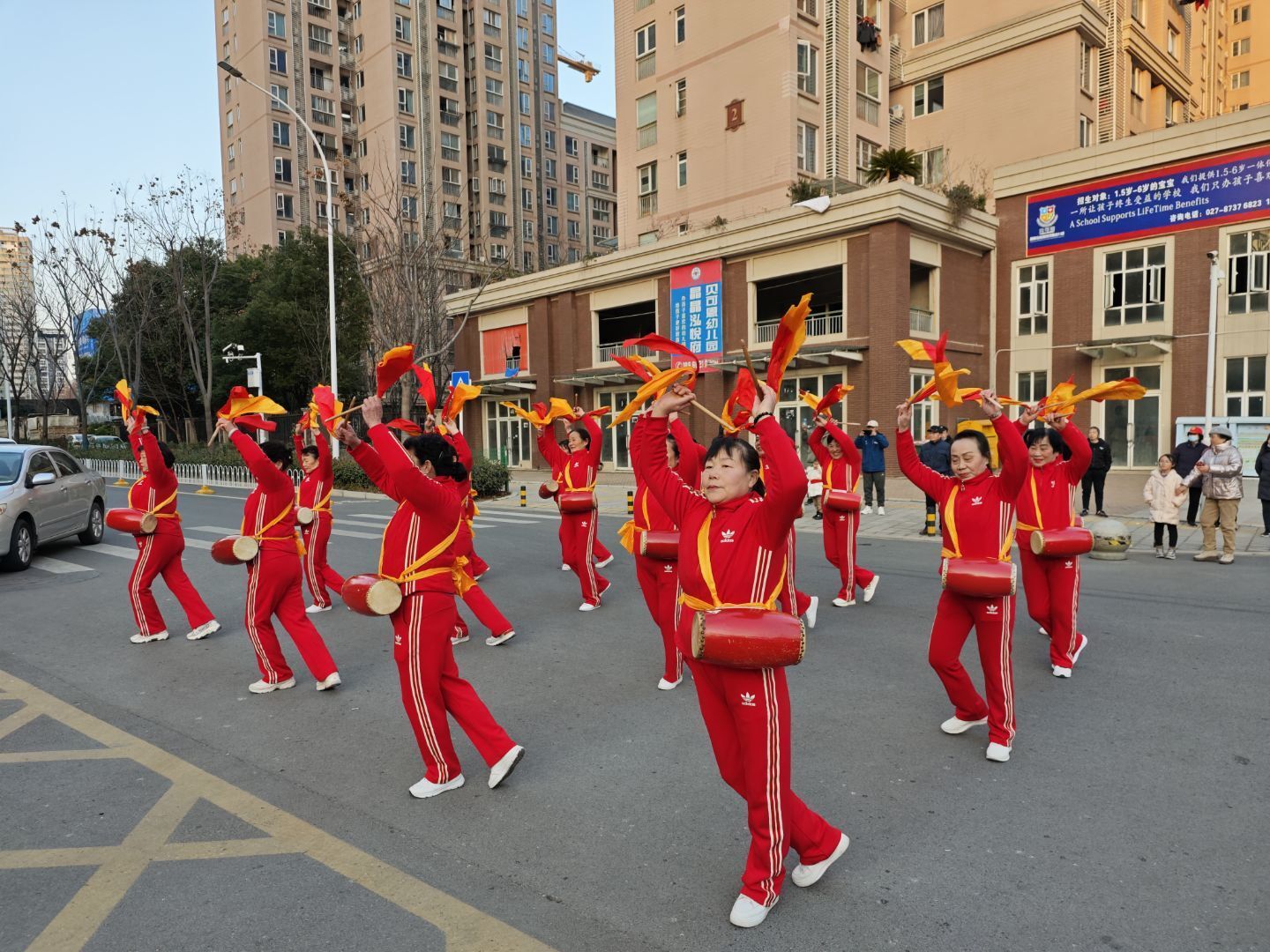 “咣~咣~咣”一阵阵锣鼓声音骤然响起。在鸿岭花园东区小区,鸿岭花园社区文艺队伍和居民志愿者们共同组成的高把龙灯队伍,还未出场就吸引了围观居民的目光。舞者们用强劲有力的手臂,或单手、或双手稳稳举起重达40公斤的爹爹灯和20公斤的婆婆灯,配以转、扫、叩、滚、举、托、顶等技艺,赢得现场居民阵阵喝彩。