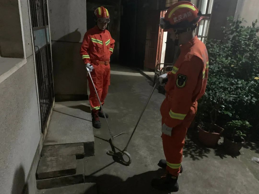 武汉消防处理蛇类警情。通讯员汉消 摄