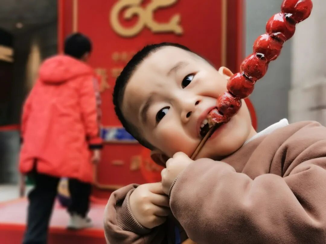 新年到啦,新年到啦!我们要吃甜甜的糖葫芦哦!嘻嘻,糖葫芦红红的,像小灯笼一样,上面还有亮晶晶的糖衣,咬一口,酸酸甜甜的,好开心呀!小朋友们,你们过年吃糖葫芦了吗?快快快,我们一起去买糖葫芦吧!