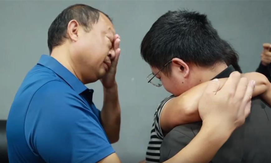 2023年9月26日上午,陈真响、吴学先与儿子陈昊相认后抱头痛哭。 视频截图