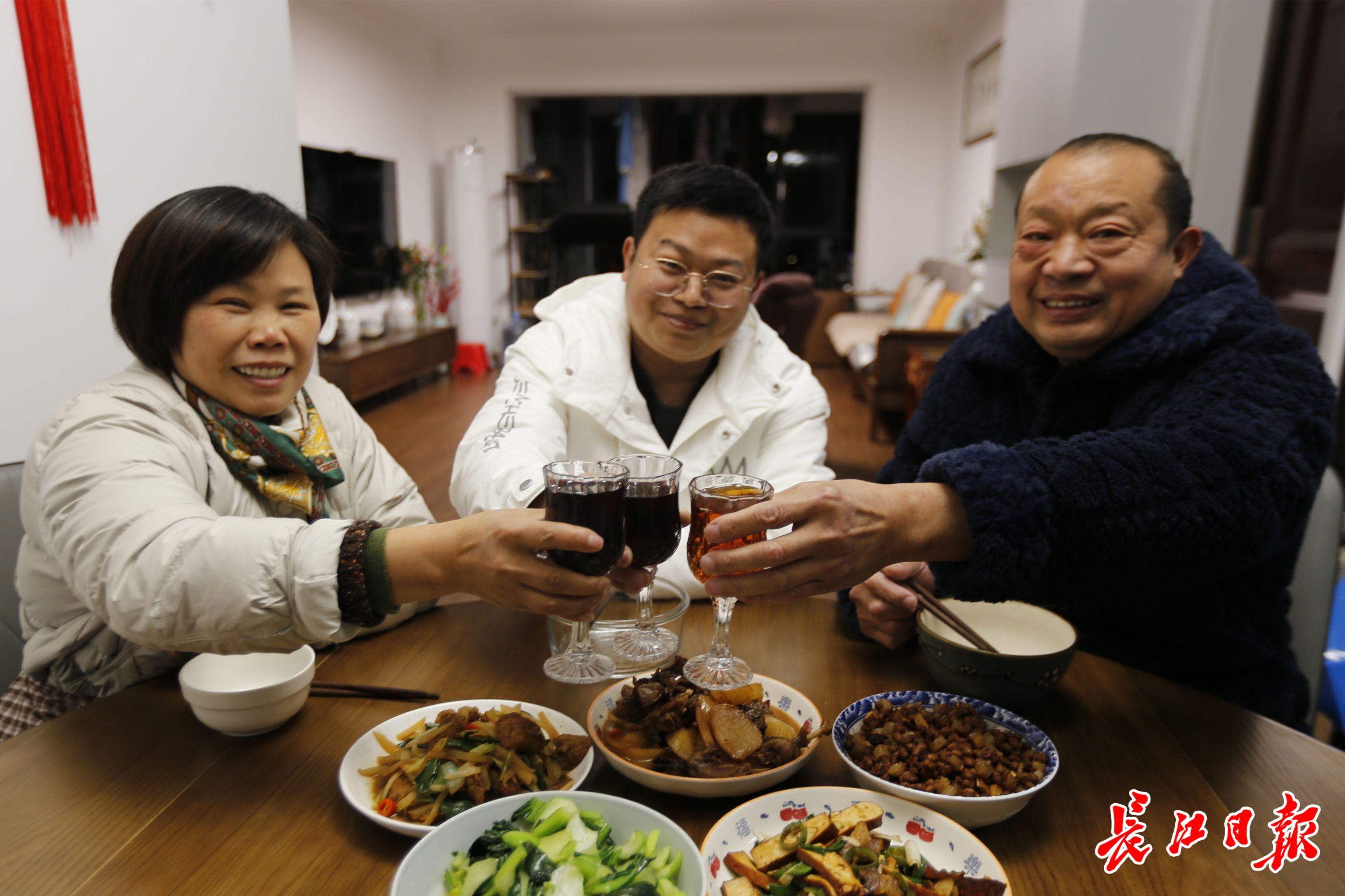 2月12日,农历正月十五,吴学先、陈昊、陈真响一家人坐在一起吃团圆饭。 记者陈勇 摄