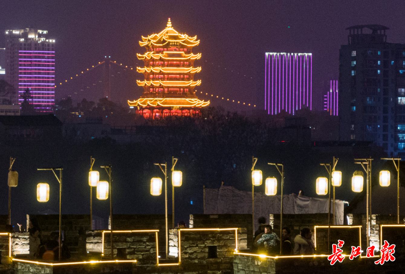2月3日正月初六立春,气温回暖。夜晚,华灯闪烁,昙华林城墙集市热闹非凡,不少市民前来打卡游玩。市民游客乘坐城墙小火车登上凤凰山顶,远眺黄鹤楼,一览城市夜景。春节期间,城墙上还有传统舞龙、鱼灯巡游、变脸喷火、火壶等民俗表演,节日气氛浓厚。 记者胡冬冬 摄