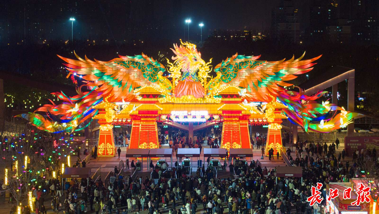 2月12日元宵佳节,夜晚,园博园汉口里人头攒动,市民来游园看花灯,打卡消费。记者胡冬冬 摄
