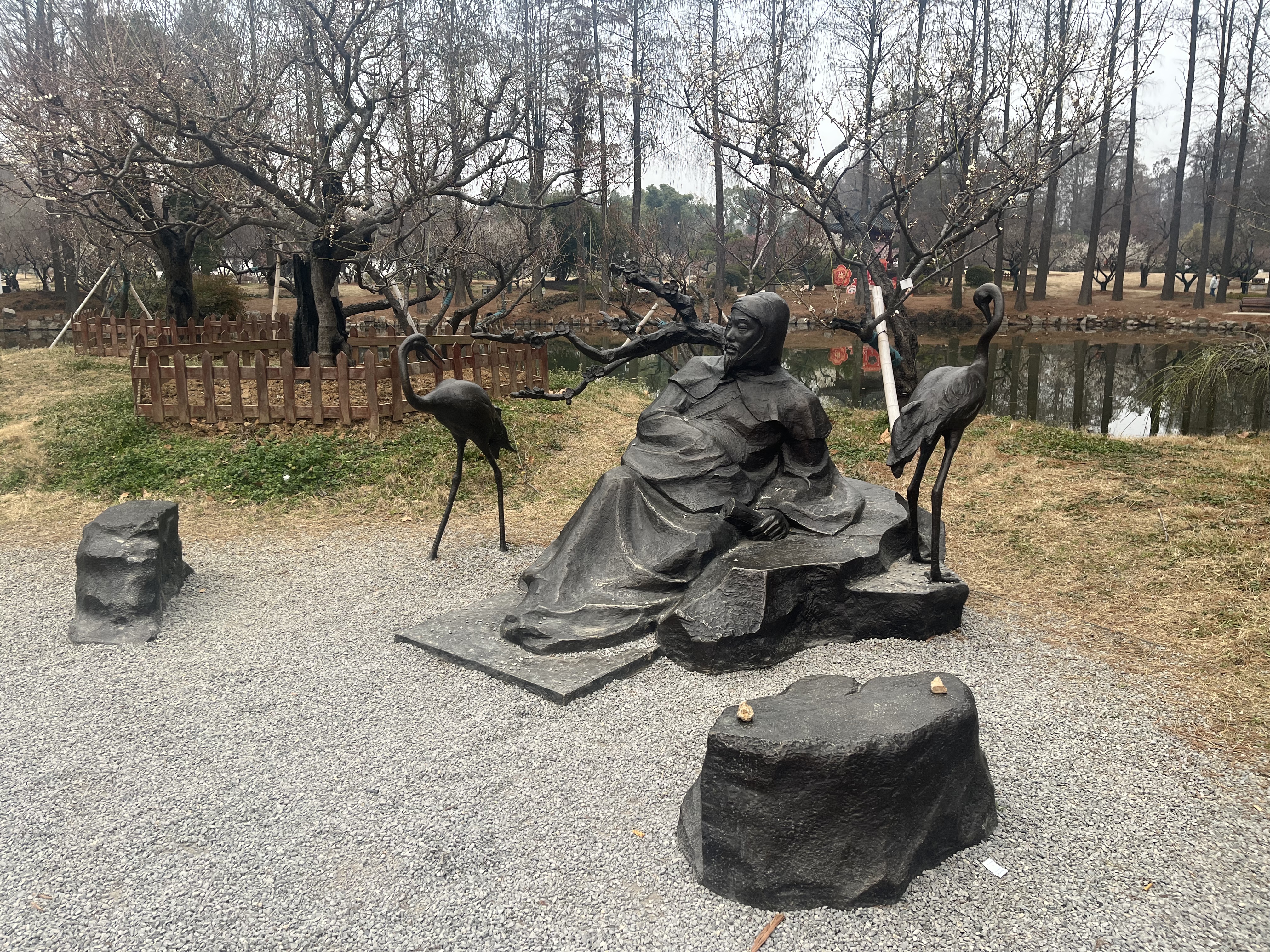 可以这样说,东湖梅园与新中国成立后的武汉城市同步发展,多年来是武汉市民赏梅的首选目的地。来到梅园西侧的东湖湖岸,“太白梦梅”的雕塑景观出现在眼前,诗仙李白曾吟出“黄鹤楼中吹玉笛,江城五月落梅花”,江润清说,这首诗是李白流放夜郎经过武昌时游黄鹤楼所作。李白作此诗的夸张手法,抒发了他迁谪之感和去国之情,同时也表明李白在武昌是见过梅花、赏过梅的。