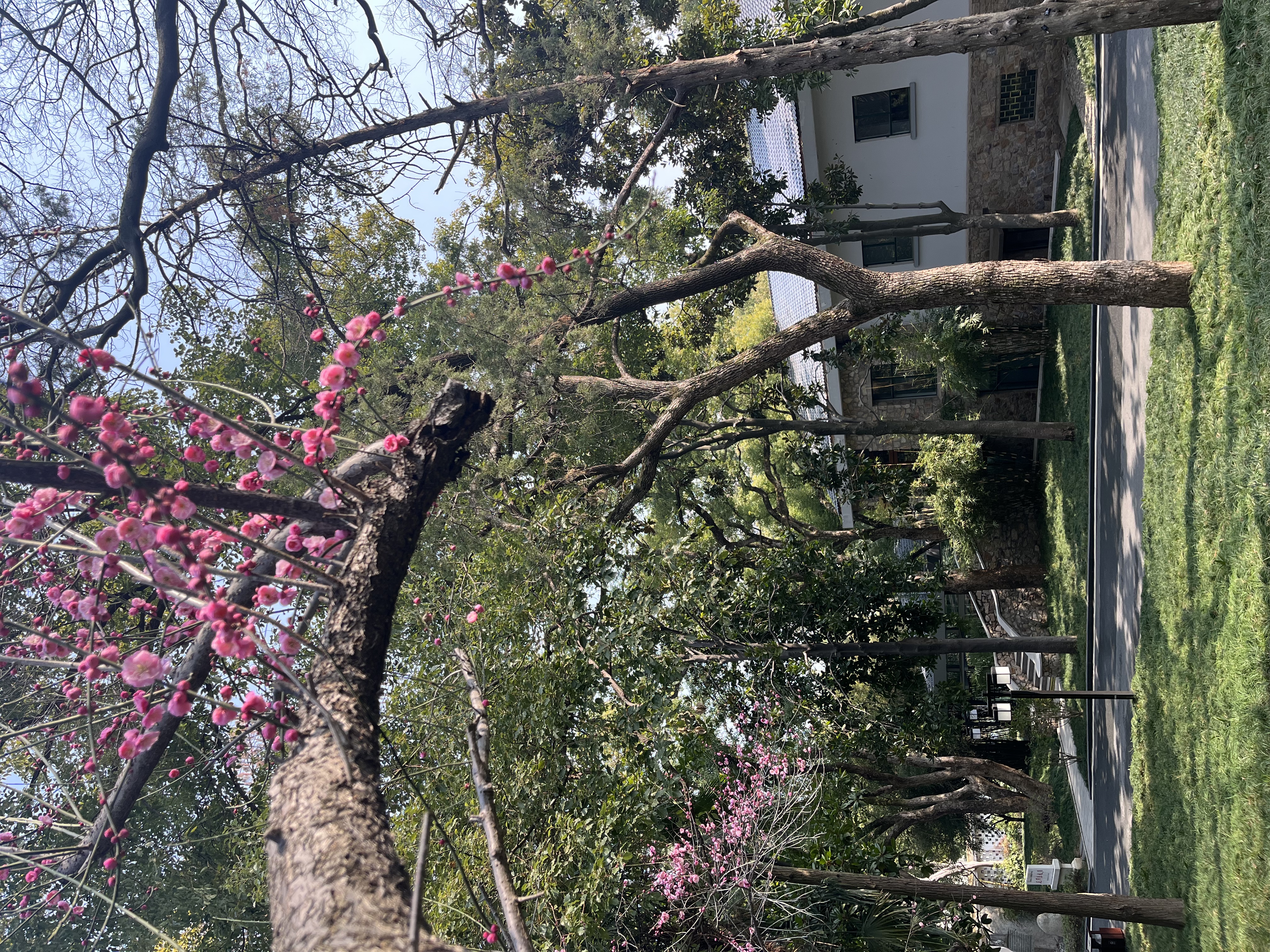 离毛泽东故居(“梅岭一号”)门前不远的梅岭就有梅花绽放。
