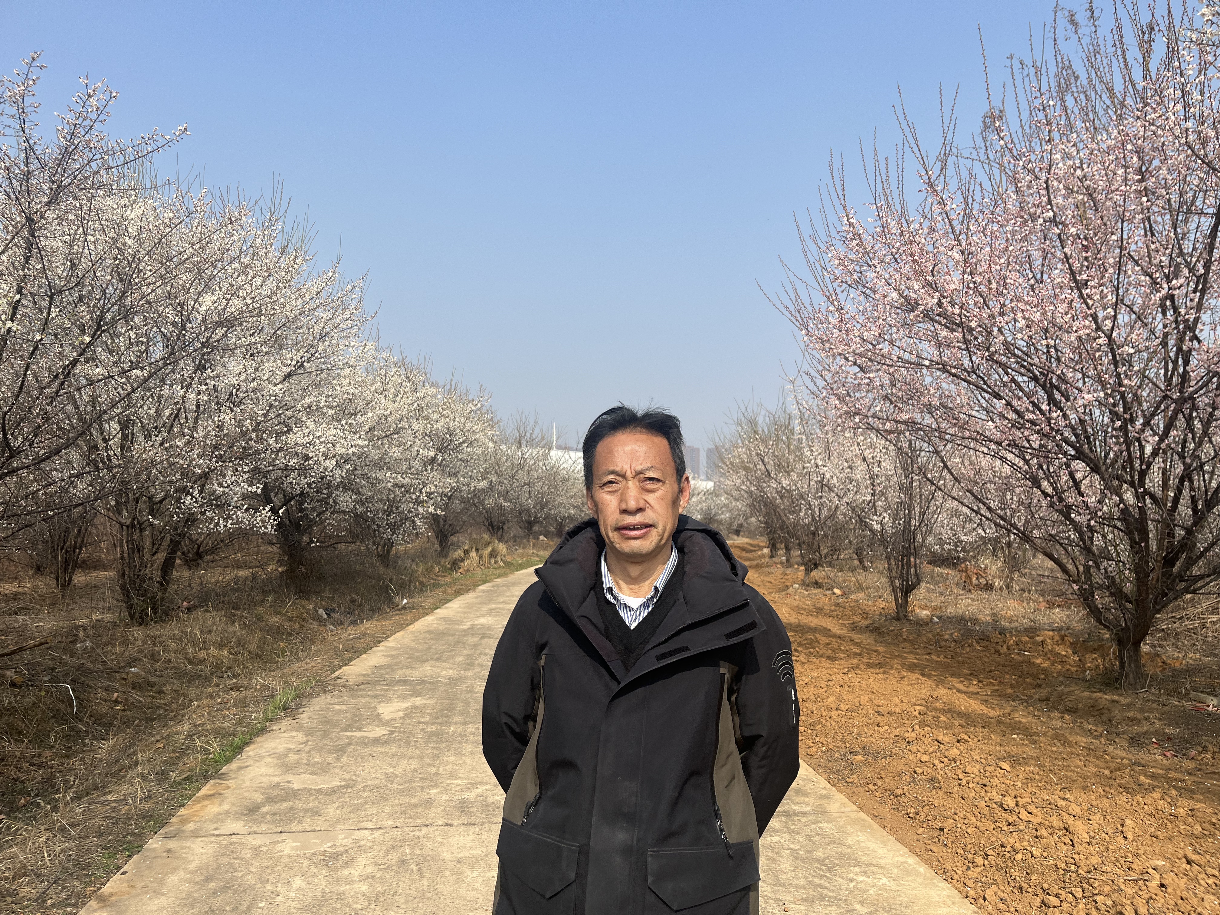 华中农业大学园艺林学学院教授包满珠在梅花实验基地和记者谈他心目中的武汉梅花文化。