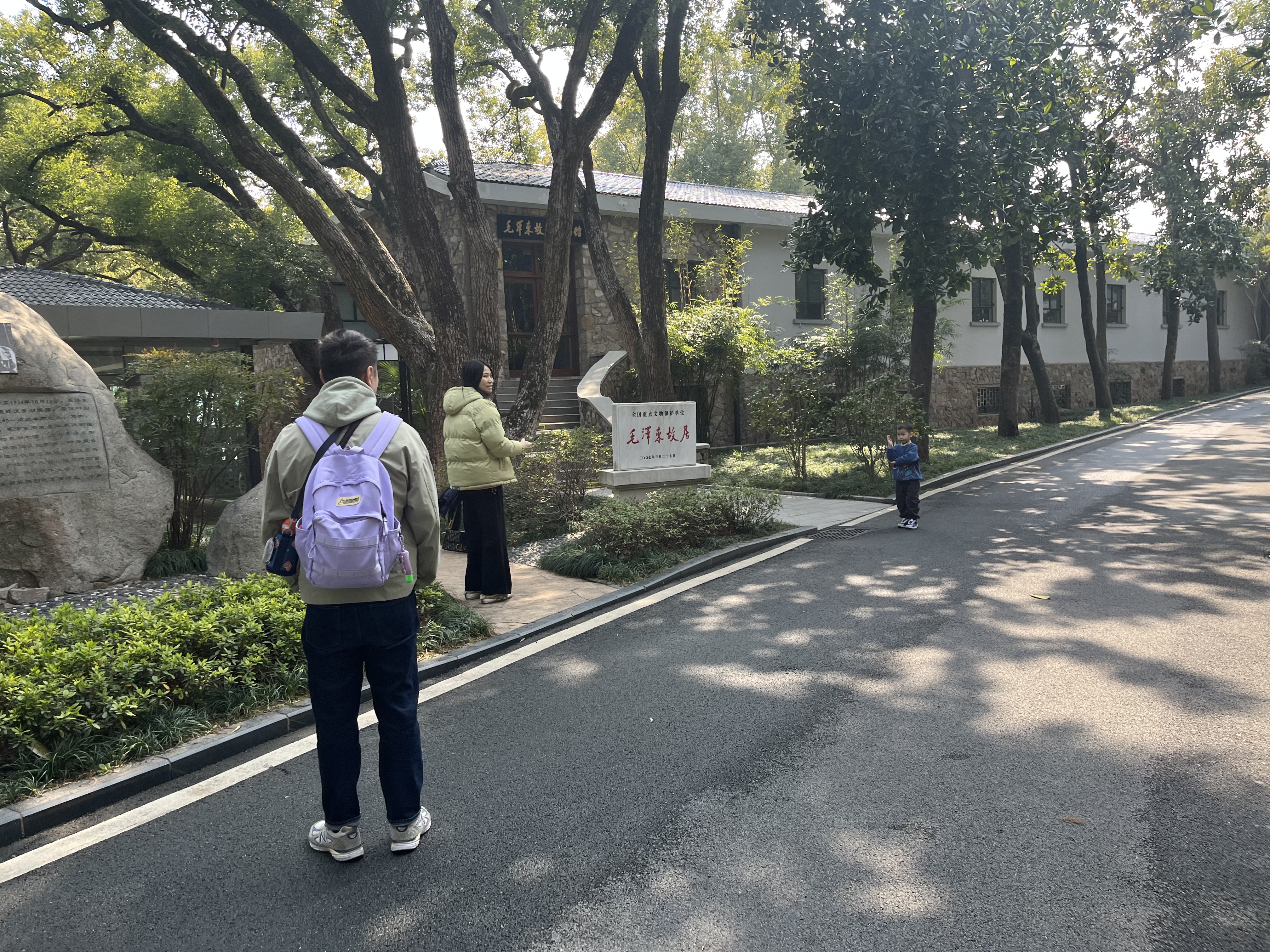游客在东湖宾馆毛泽东故居(“梅岭一号”)门前参观。
