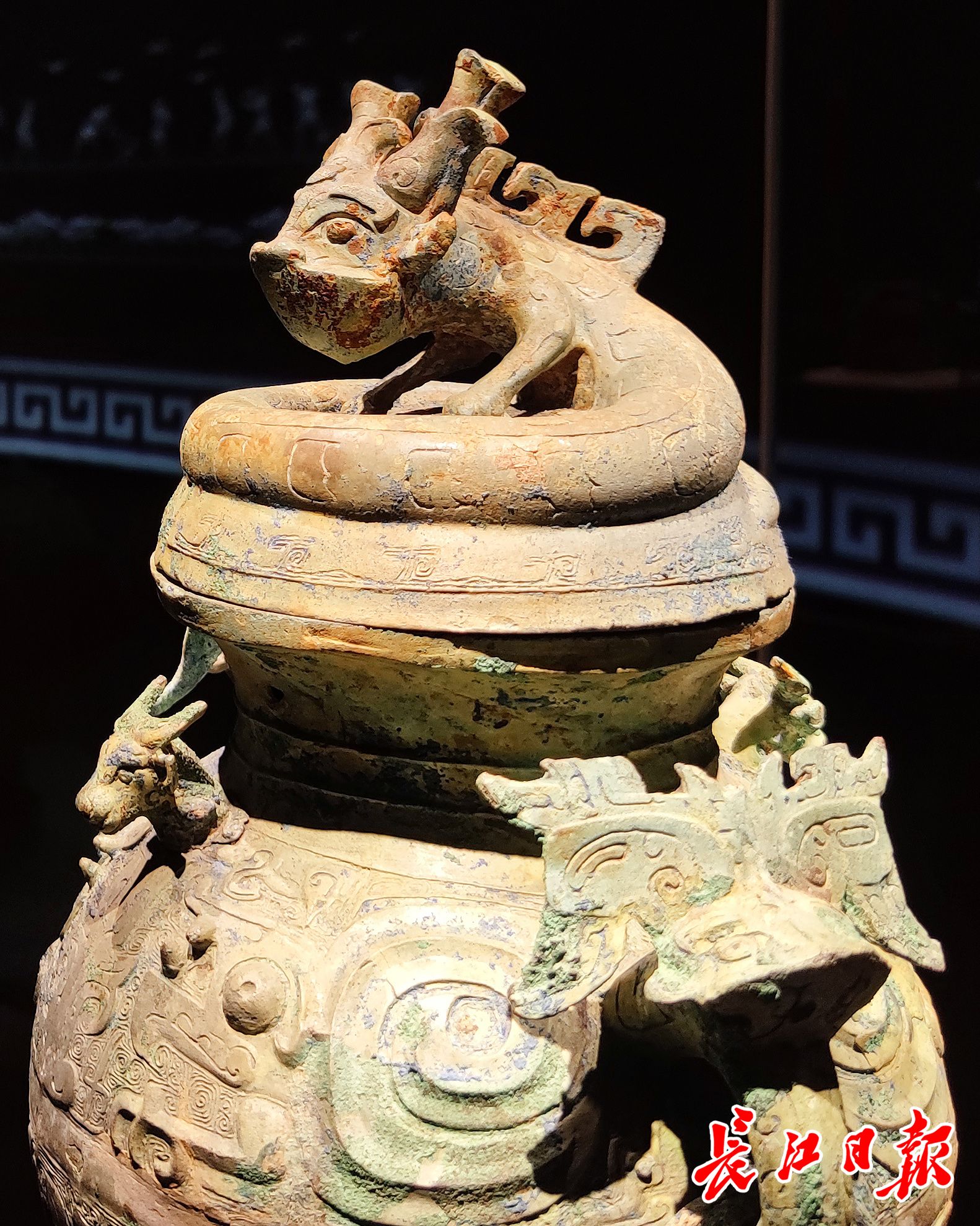 随州市博物馆蟠龙兽首铜罍。
