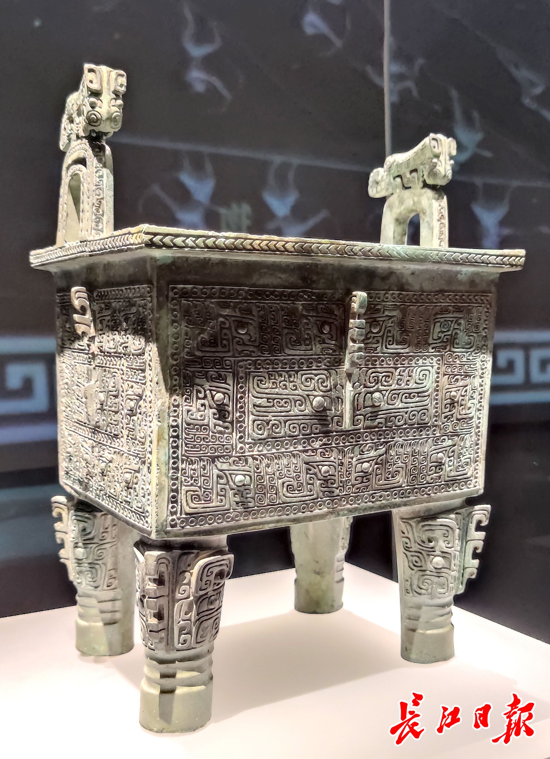 江西省博物馆兽面纹虎耳方鼎。