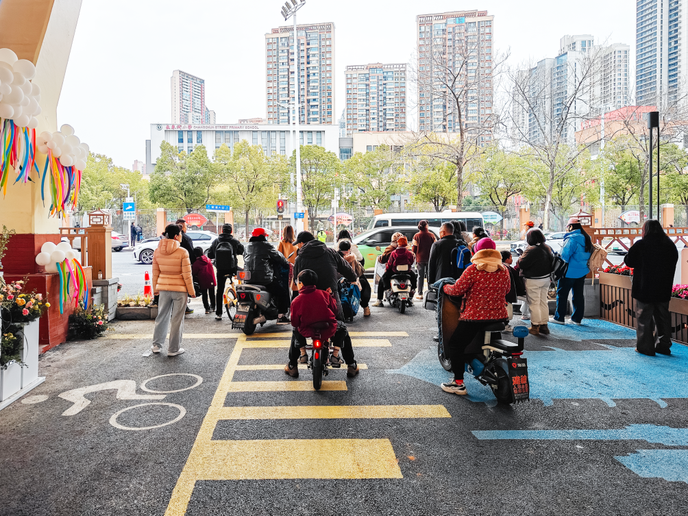 与以往在商圈内停放接送学生车辆相比,家长们纷纷称赞,桥下空间距离学校更近,能随时关注班级放学动态,接送孩子变得快速便捷,极大地提升了出行效率。