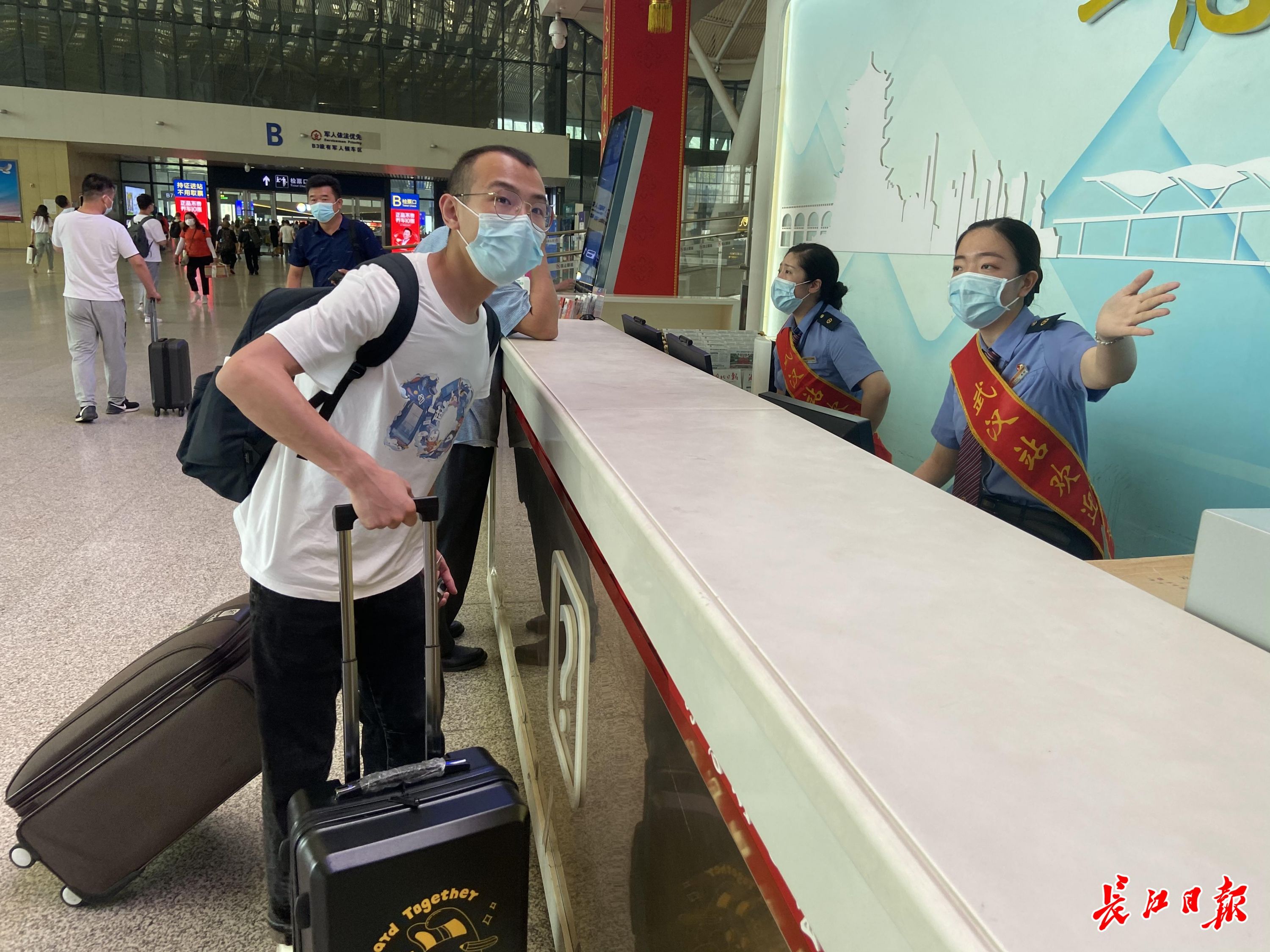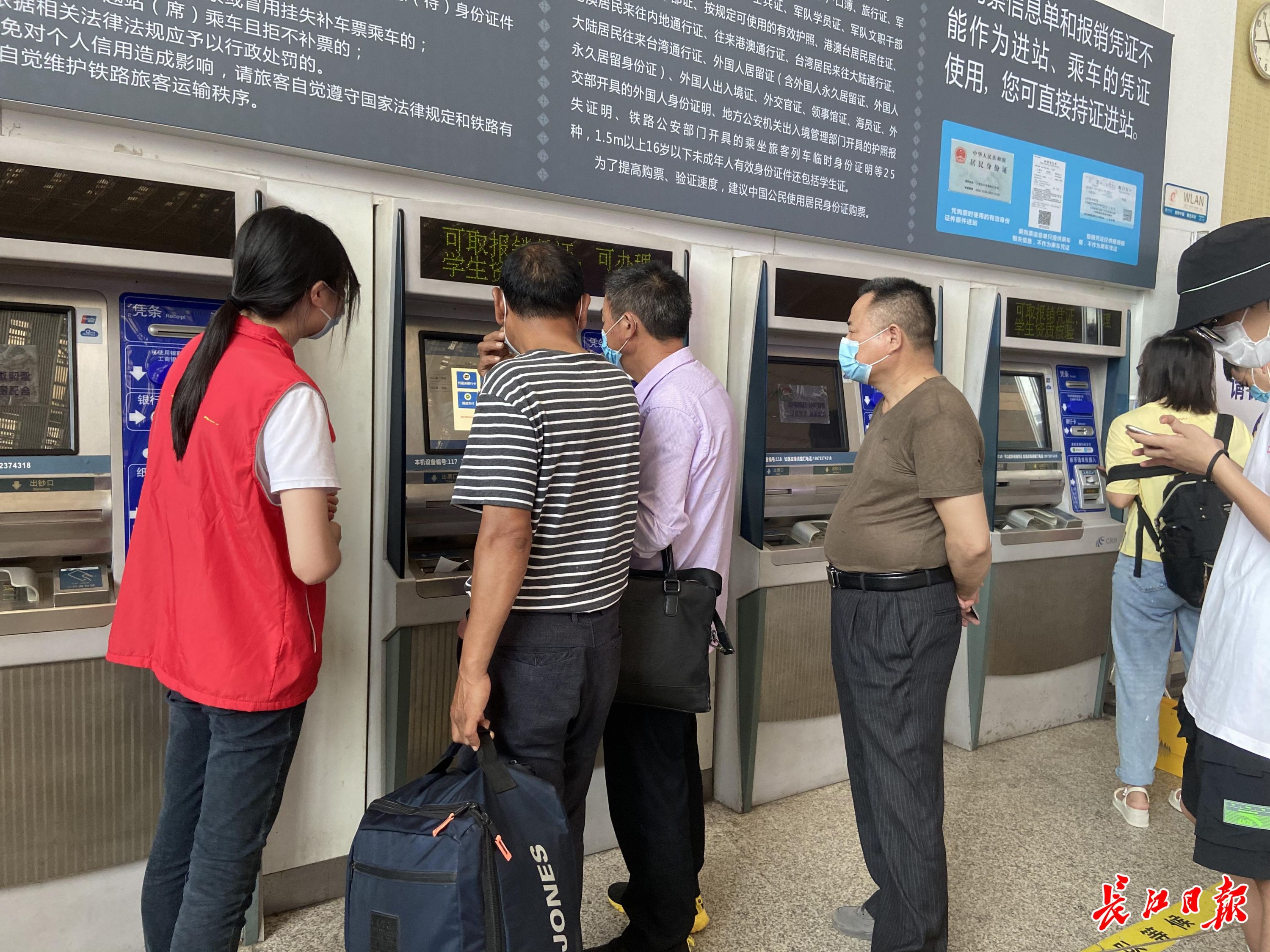 武汉、汉口、襄阳、宜昌、十堰等车站加大乘车秩序维护和旅客疏导力度,安排党团员志愿者开展导乘服务,为旅客提供洗手液、口罩等防疫用品。