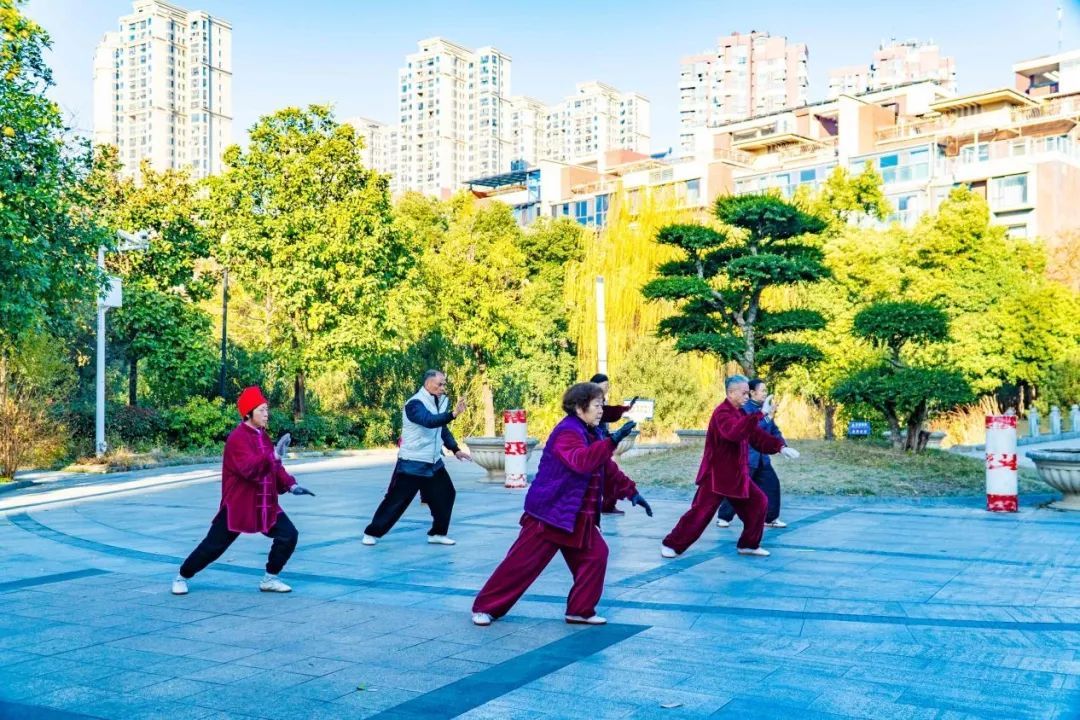 哼着小曲儿漫步,打太极、排练大鼓……百步亭社区的世博园游园和文卉苑游园,为老人们构筑起温馨惬意的休闲天地。