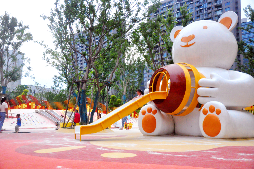 汉广海棠公园也是精彩不断。北区的“萌熊乐园”里,孩子们呼啸着滑下,溅起沙池里欢乐的“小浪花”。
