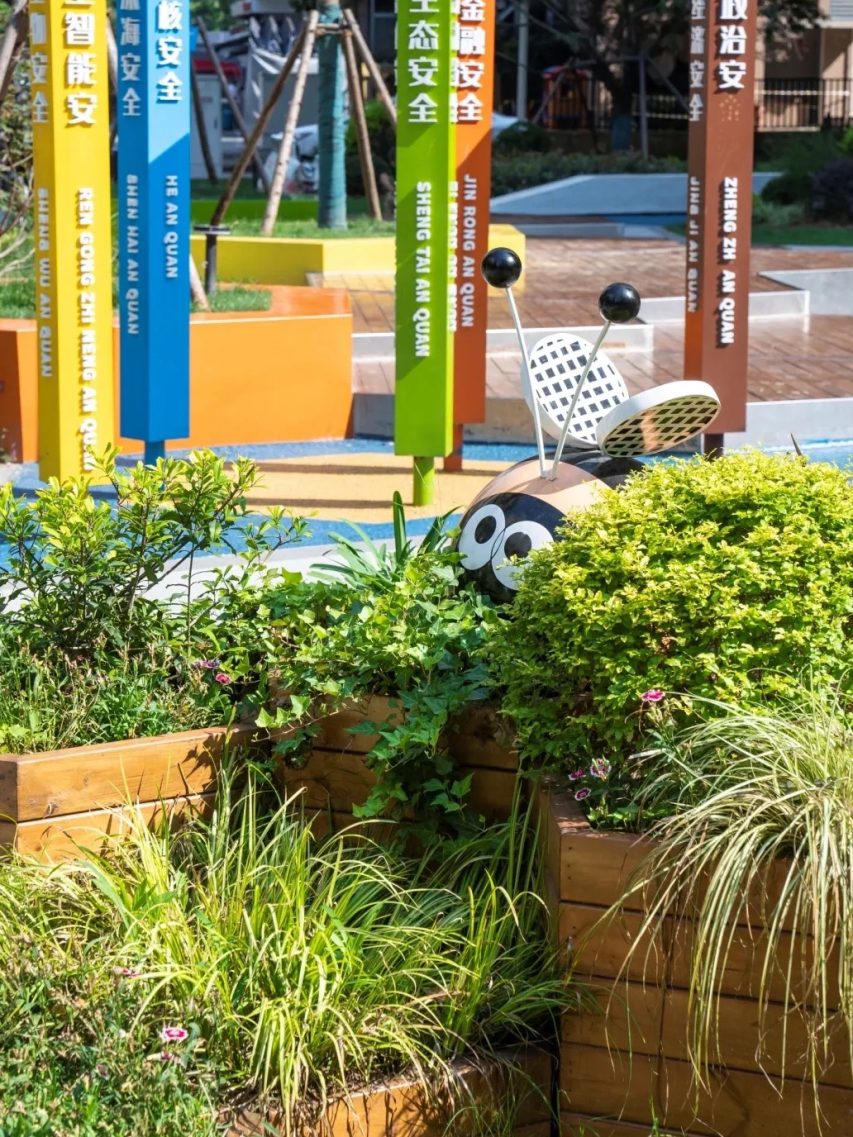 小蜜蜂IP领你探秘“蜂巢”,国家安全知识展板、立柱随处可见,有趣的互动装置,让人在玩乐间将守护国家安全的意识悄然扎根。