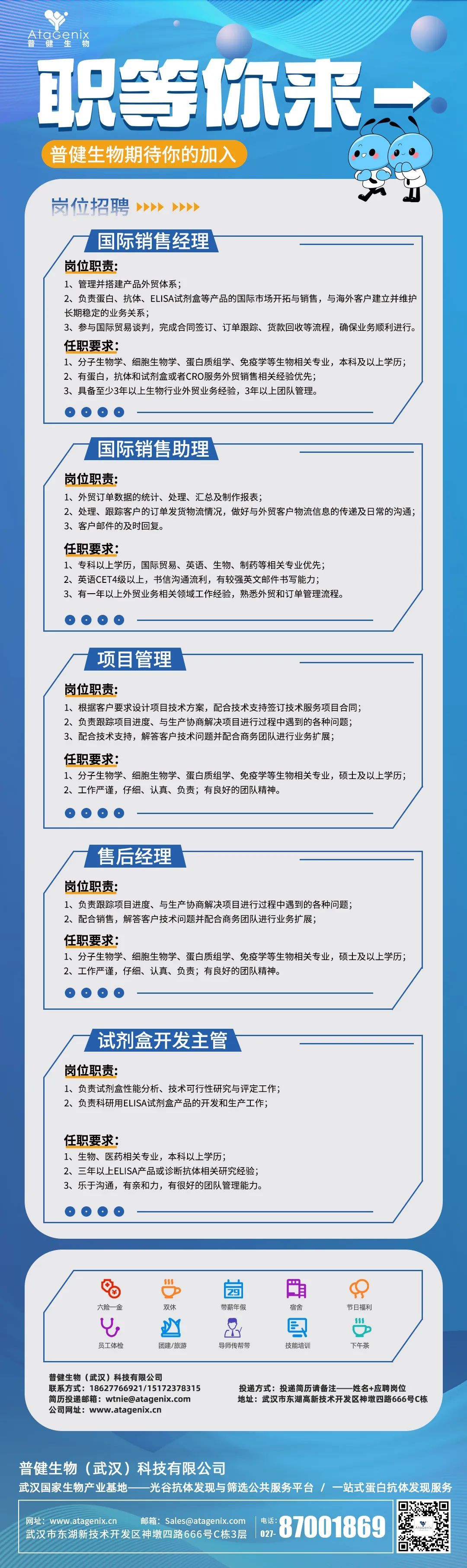 AtaGenix普健生物(武汉)科技有限公司是武汉国家生物产业基地指定光谷抗体发现与筛选公共服务平台,专注重组蛋白、抗体、诊断原料、抗体药物发现等自主技术平台的建设和下游生物医药产品的战略合作。