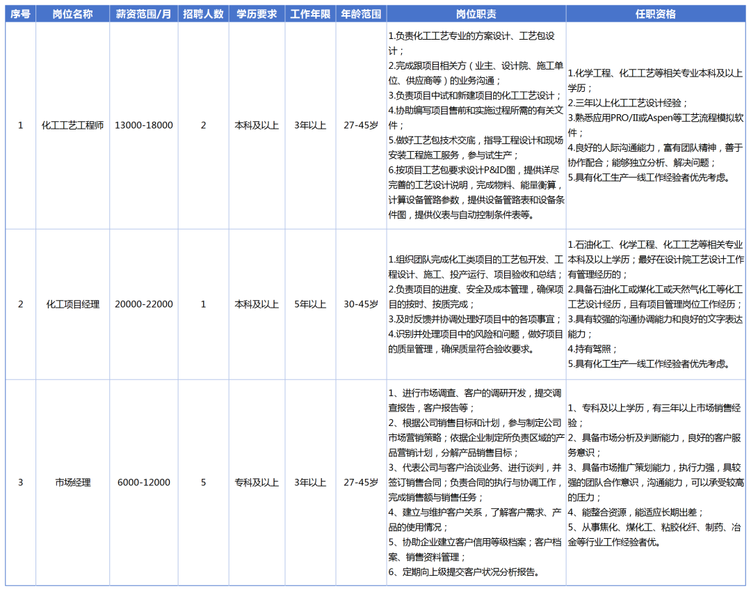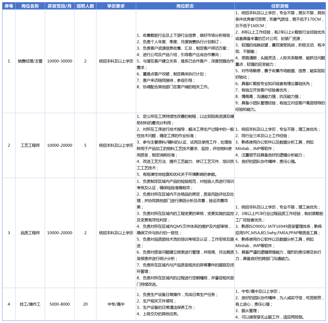 1、年龄30-43岁,统招本科及以上学历,管理、质量等相关专业,英语良好,特别优秀者可适当放宽。