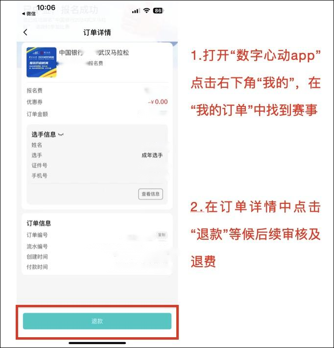 2、选择“中国银行2025武汉马拉松”,点击“退赛申请”按钮进行退赛登记即可。