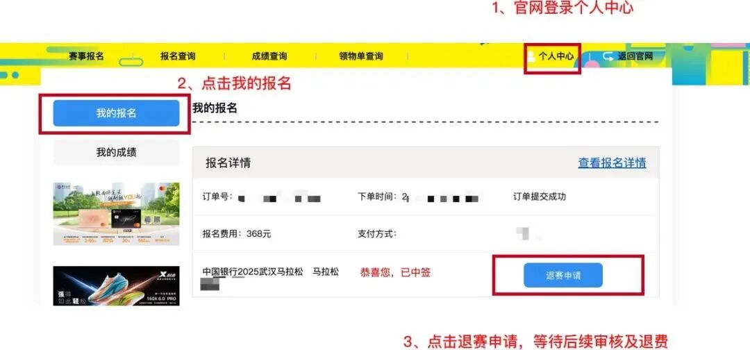 需要注意的是:退赛通道仅对于前期中签选手开放,不对公益名额及赞助商名额开放。