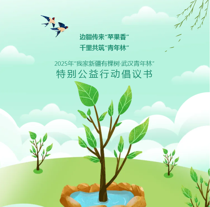 2025年“我家新疆有棵树——武汉青年林”公益项目,计划在博乐市种植5000棵苹果和海棠树。