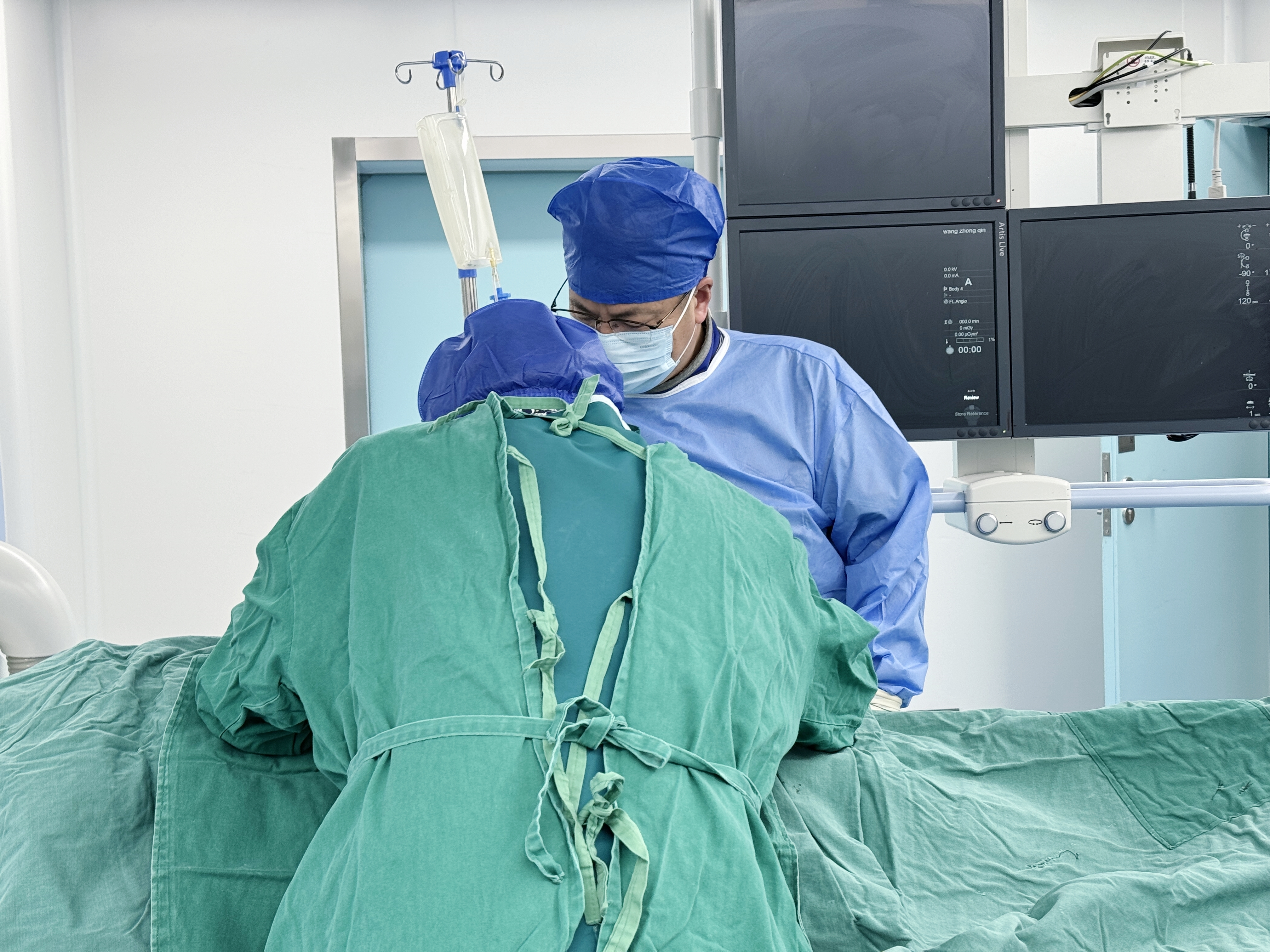 医护团队为王爷爷实施髂静脉支架置入术。
