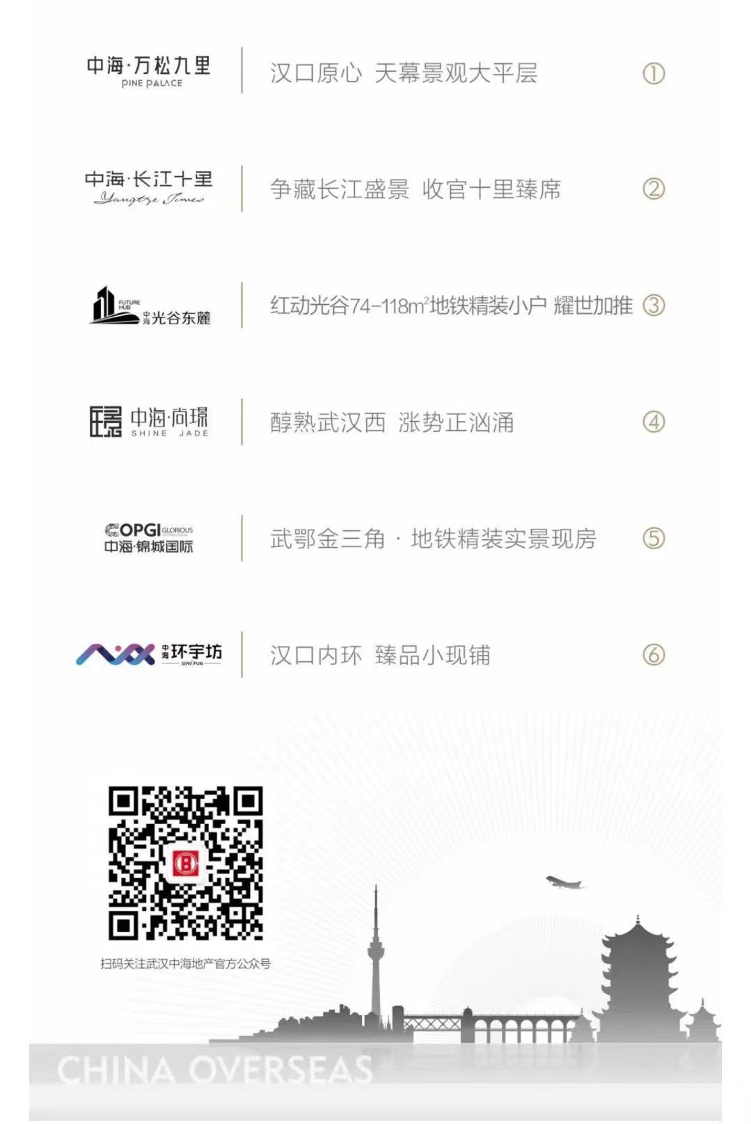 目前,武汉中海六大项目在售,数千套房源遍布武汉三镇,从刚需到改善,从住宅到商业,从自住到投资,产品线全覆盖,满足不同客户的置业与价值需求。项目选址都深度嵌入城市未来发展的主力板块,其中有“里系”高端项目——位于汉口原心中山公园旁的中海·万松九里和二七滨江可一线瞰江的中海·长江十里,也有大热板块光谷的“东麓”等高性价比产品,皆十分具有宜居性与发展潜力。