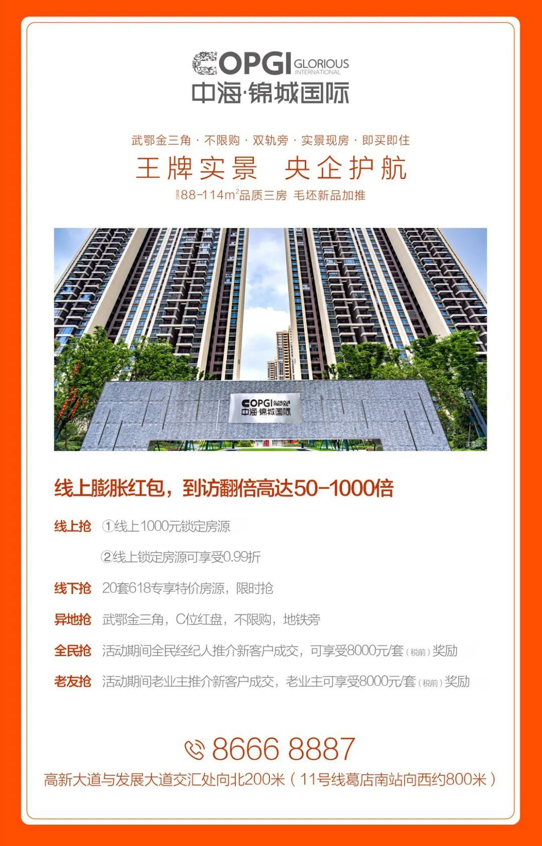 中海·锦城国际,位于“武鄂金三角”,央企精工品质,TOD双轨旁,不限购。中海·锦城国际项目1—4号楼已在今年2月交付,客户满意度达到行业标杆水平 ,以中海硬性产品力及软性服务力获得业主的一致好评。项目实景现房,精装、毛坯任选。建面约88—114平方米品质三房毛坯新品入市,全新升级样板间邀您品鉴。