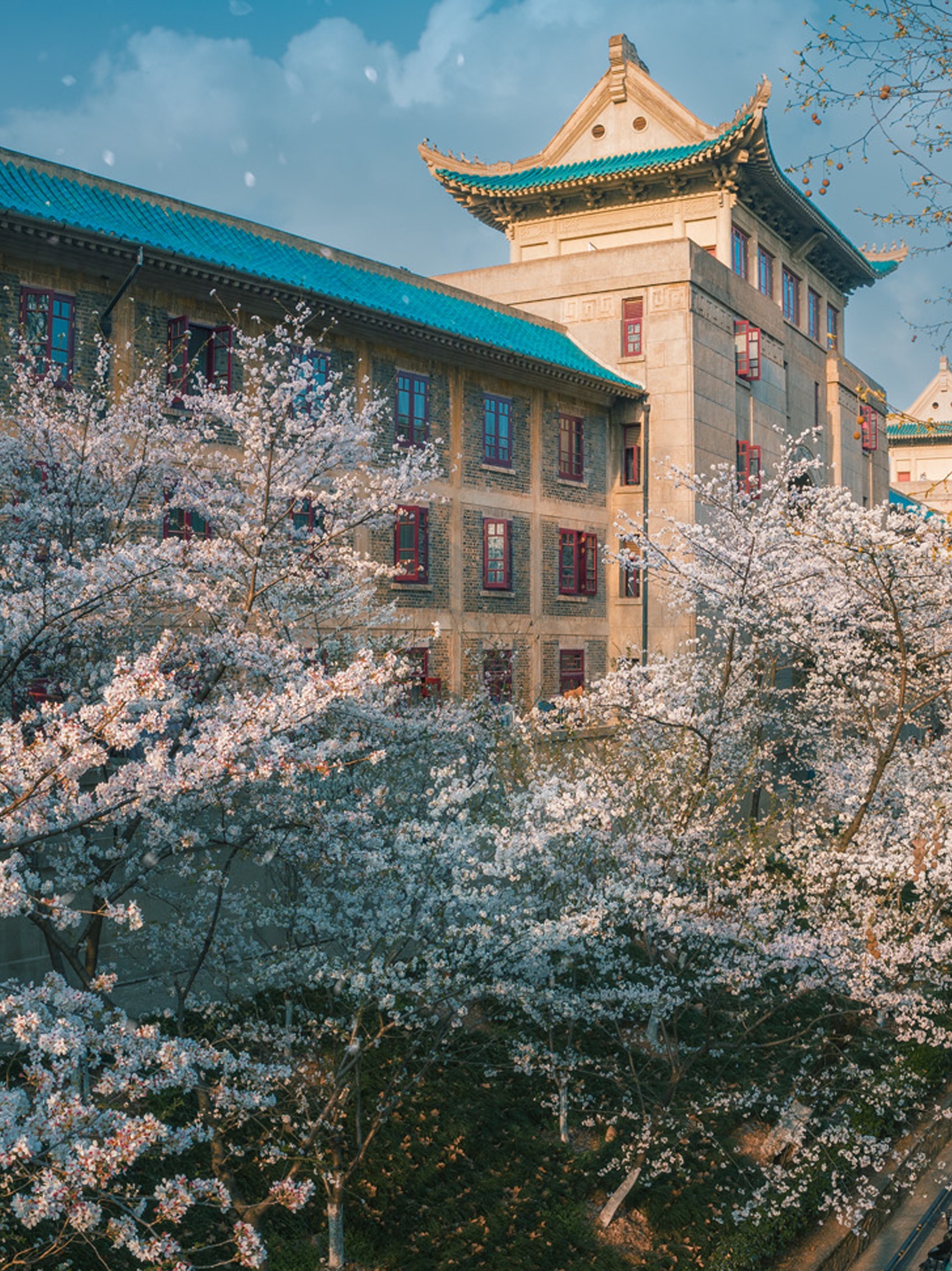 华中科技大学西十二教学楼、东九教学楼是网上爆火的打卡点。拥有怎么拍都出片的“玉兰教室”藏在西十二教学楼,窗框与玉兰同框更有故事感,你坐在教室,窗外就是绝美的花海。东九教学楼的玉兰花更加热烈,它们聚在一起汇成一片花海。树丛中,骑车赶着去上课的少年、举起手机记录美好的摄影师,就如同青春与春光的双重奏……