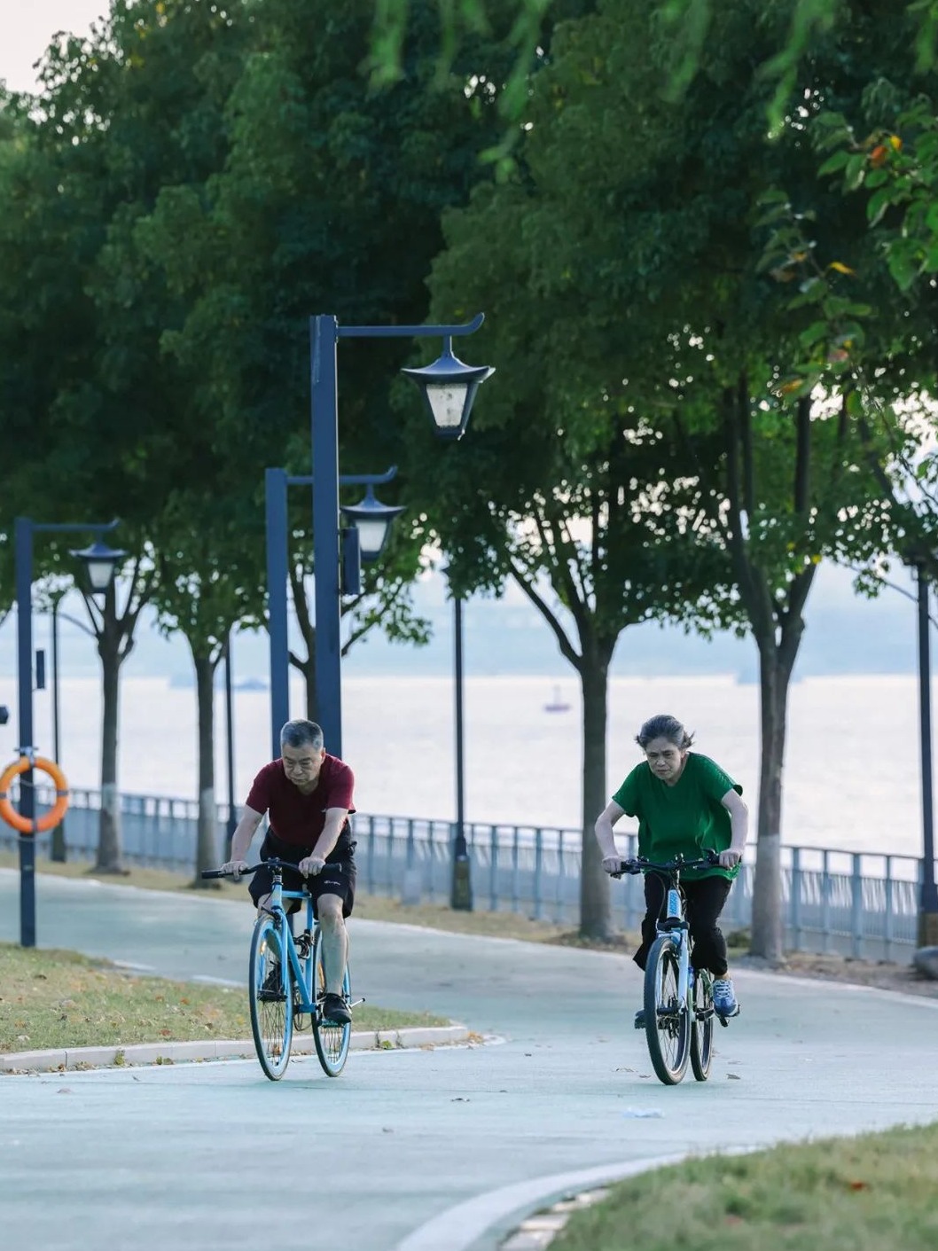 市民在武昌江滩骑行。图源:武昌文旅