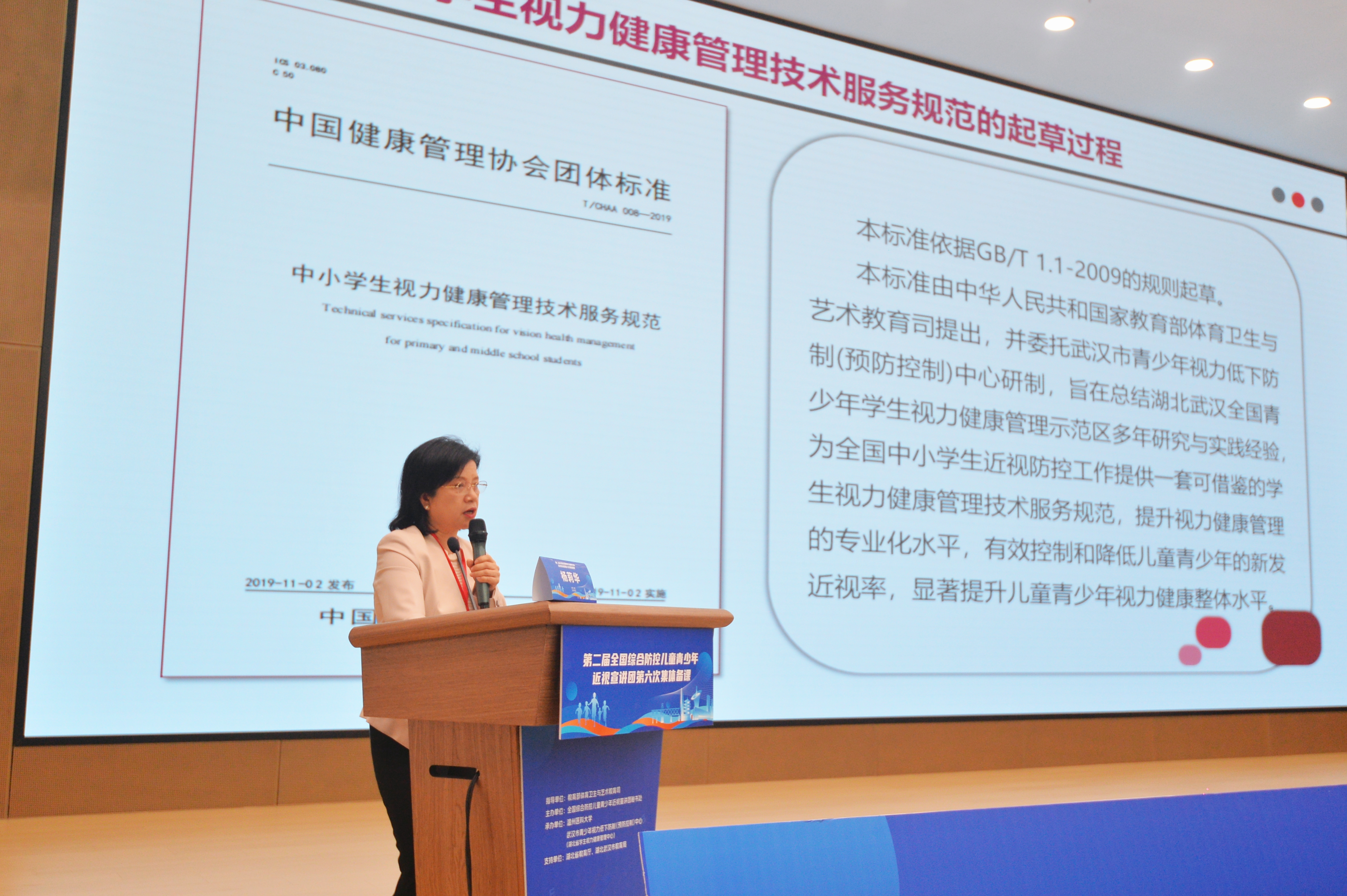 受教育部委托,全国综合防控儿童青少年近视宣讲团专家宣讲团副团长、武汉市青少年视力低下防制(预防控制)中心主任杨莉华在活动中重点解读了《中小学生视力健康管理技术服务规范》,该标准涵盖了健康教育、监测预警、综合干预、动态管理以及质量控制与效果评价等内容,从教育、管理、服务三方面深入阐述,指导从中小学生视力健康管理服务模式、中小学生视力健康管理技术服务规范与智慧化学校学生视力健康管理系统三方面全面实施中小学生视力健康管理。