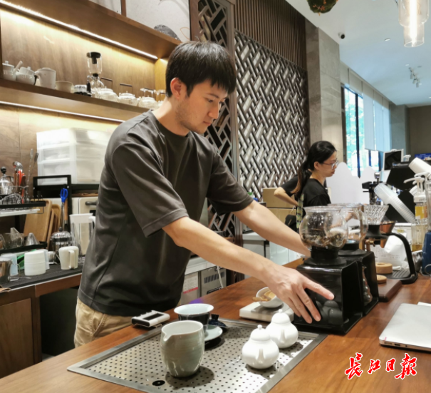 在“小茶原”茶馆,陈钰澍正在制作手冲茶。长江日报记者宋磊 摄